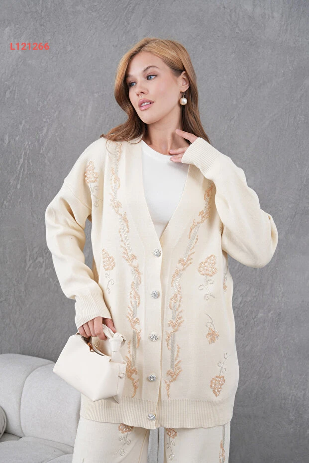 استمتعي بأناقة غير مكلفة مع طقم Miss Allos المؤلف من كارديجان واسع مزين بالخرز وسروال متناسق. يجمع هذا التصميم بين الراحة والفخامة، حيث يمنحك إطلالة عصرية تناسب جميع المناسبات. مصنوع من مواد عالية الجودة لضمان راحة مثالية طوال اليوم.