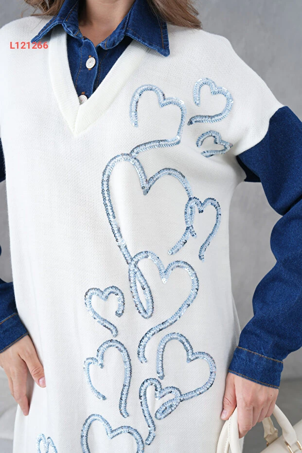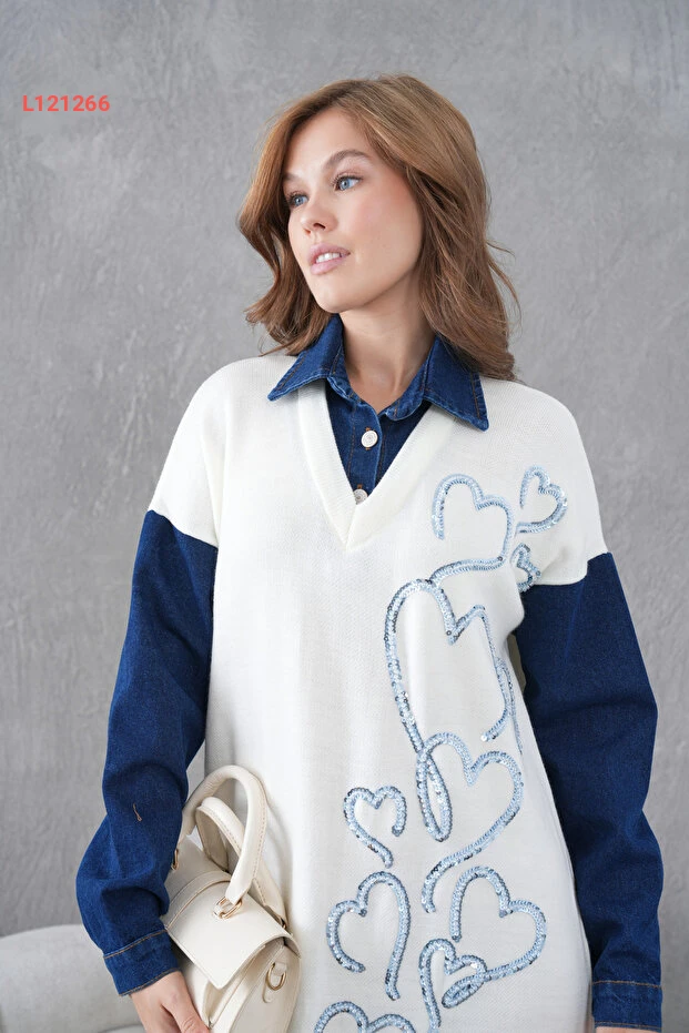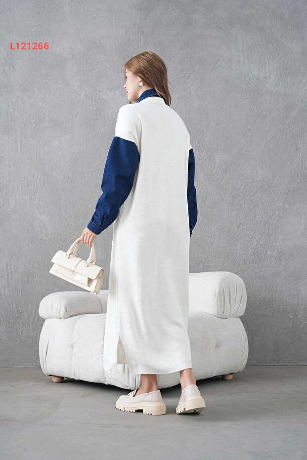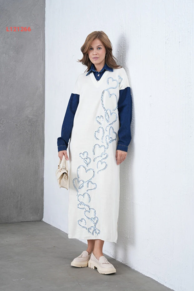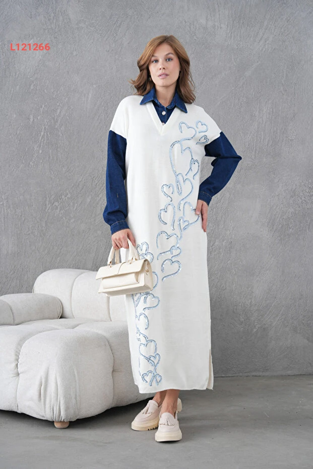 استمتعي بأناقة لا تضاهى مع فستان Miss Allos، الذي يتميز بأكمامنا المميزة وتصميمه الأنيق من قماش الجينز. مزين بأصداف لامعة وخرز جذاب، يوفر لكِ هذا الفستان الواسع حرية حركة مثالية ويضيف لمسة من الفخامة إلى إطلالتك. ارتدي هذا الفستان في المناسبات الخاصة أو في الحياة اليومية لتلفتي الأنظار أينما كنتِ!