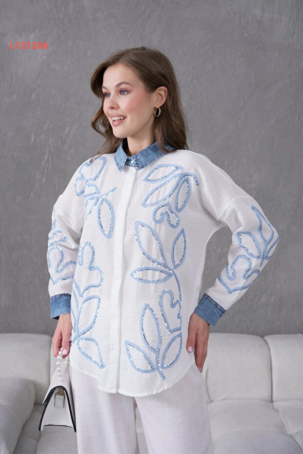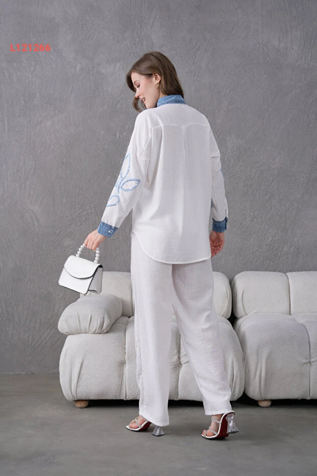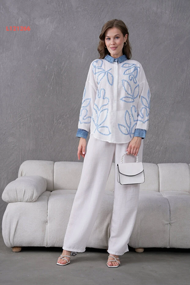 اكتشفي أناقتك مع مجموعة Miss Allos التي تضم قميصًا وسروالًا بتصميم فريد. يتميز القميص بأزرار مطرزة على الياقة والأساور مع تفاصيل جينز أنيقة، مما يضمن لك مظهرًا عصريًا ومريحًا في آن واحد. اجعلي كل يوم مناسبة خاصة مع هذه الإطلالة الجذابة التي تجسد الأناقة والراحة.
