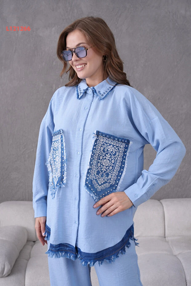استمتعي بالأناقة والراحة مع طقم Miss Allos المصنوع من الكتان، الذي يضم قميصًا مزينًا بتطريز الألماس واللؤلؤ، مع تفاصيل دقتها عالية من الجينز. يجمع هذا التصميم بين الأناقة العصرية والراحة الفائقة، مما يجعله الخيار المثالي لكل مناسبة، من الخروجات اليومية إلى اللقاءات الخاصة. ارتديه لتتألقي بتصميم فريد وراقي يبرز أنوثتك بكل سلاسة!