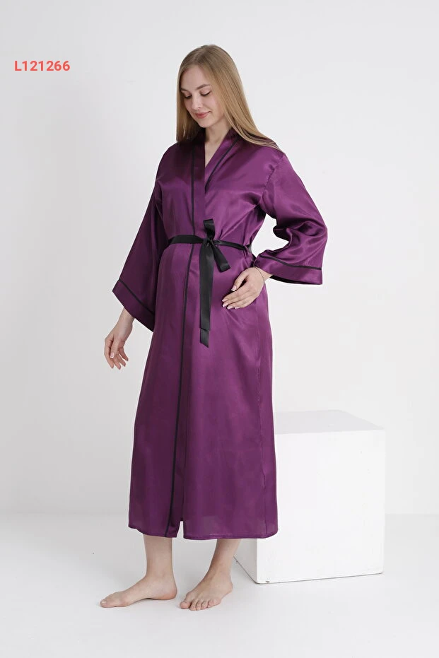 استمتعي بأناقة الراحة مع روب Miss Dünya ليوسا، المصنوع من ساتان فاخر يتميز بأكمام واسعة، مما يمنحك حرية الحركة أثناء الحمل ومابعد الولادة. تصميمه الأنيق والمريح يجعله الخيار المثالي للاستخدام اليومي، بينما يحافظ على لمسة أنثوية جذابة تناسب كل الأوقات.