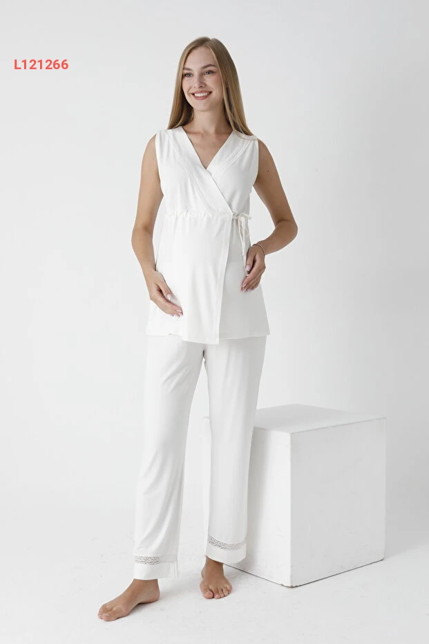 استمتعي بأقصى درجات الراحة والأناقة مع طقم البيجامة للحوامل واللوهزاء من Miss Dünya، الذي يتميز بتصميمه المعاصر مع تفاصيل الدانتيل الرائعة. توفر ربطة الأمان من الأمام سهولة في الارتداء، مما يجعله الخيار المثالي للأم المستقبلية للتمتع بالراحة والأناقة في كل لحظة.