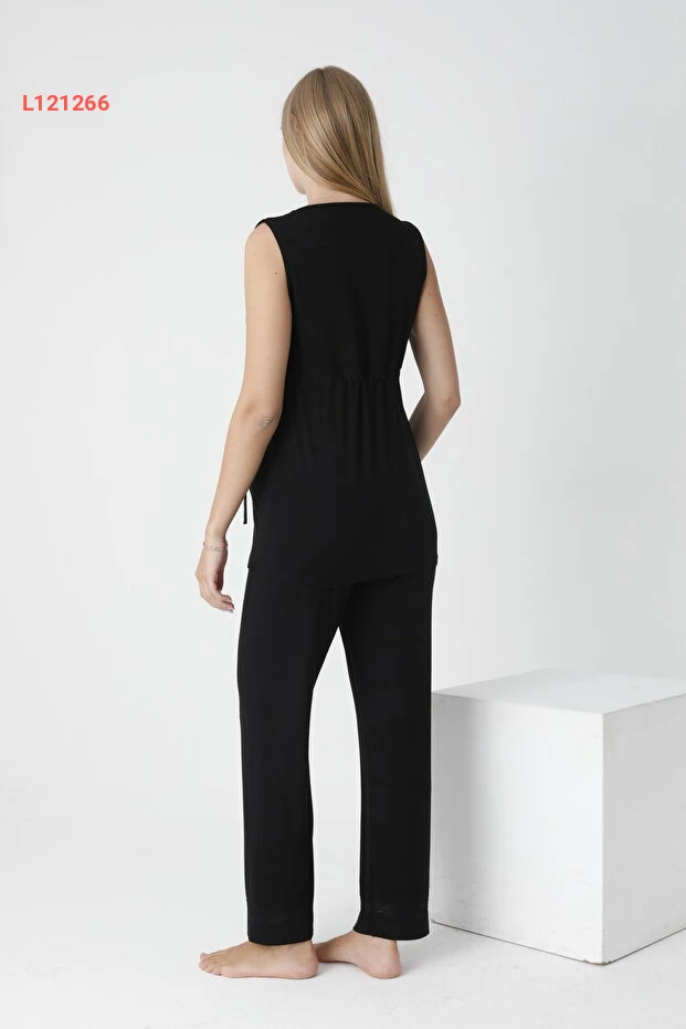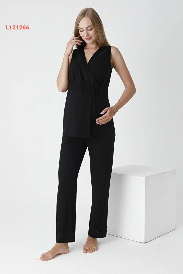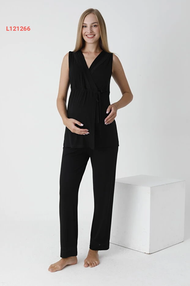 بيجامة حوامل و نفاس مزينة بالدانتيل بدون أكمام مع ربط أمامي من ميس دُنْيا ليزا