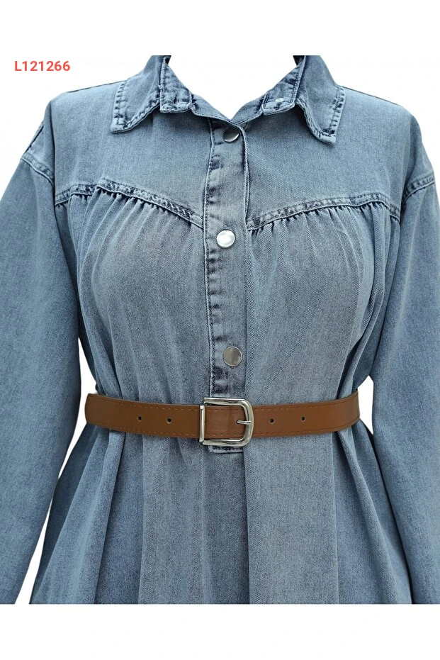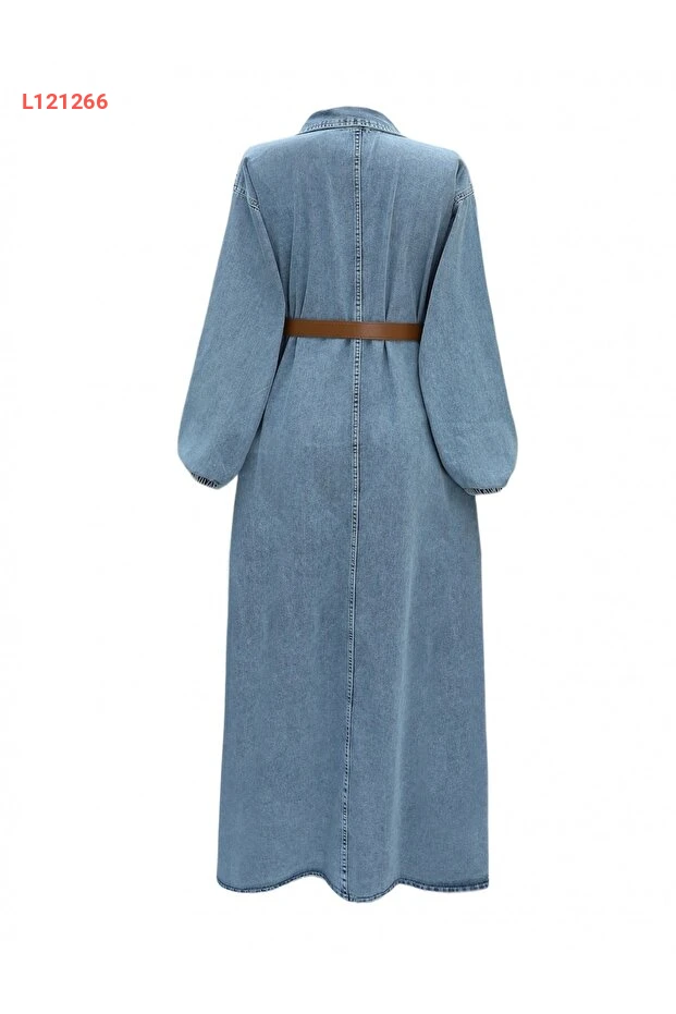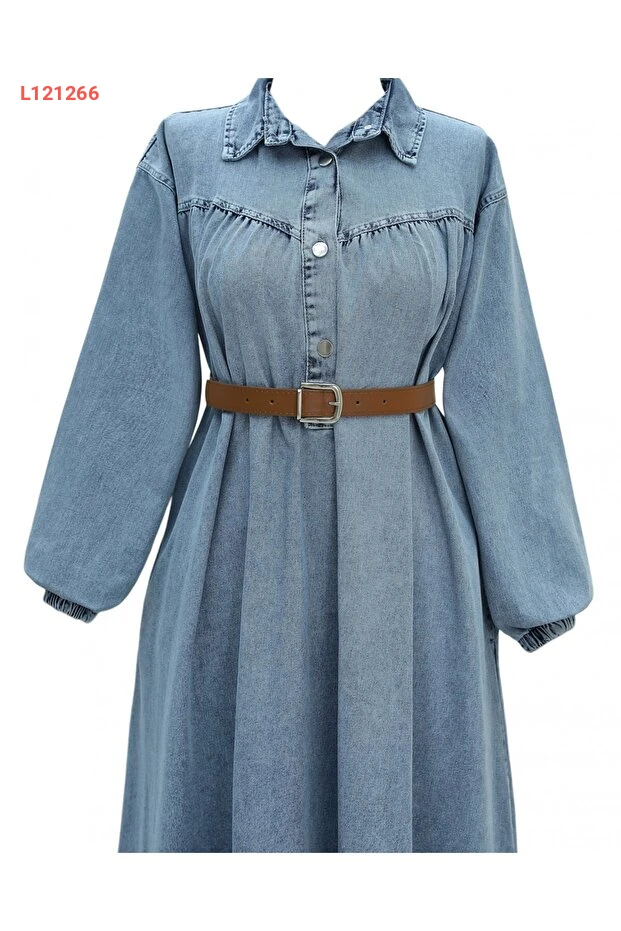 فستان جينز مزين بأزرار مع أكمام مرنة وحزام من ميس روني
