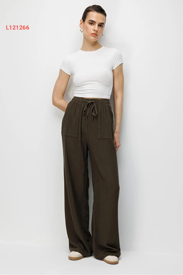 تألقي بأناقة مع بنطال Mixray 4629 ذا الخصر العالي والساق الواسعة، المصنوع من قماش الفيسكوز الخفيف والمريح. يتميز بلون أنتيك هاكي الجذاب، مما يجعله قطعة مثالية لجميع المناسبات، سواءً كانت نهارية أو مسائية، ليضفي لمسة من الأناقة العصرية على إطلالتك.