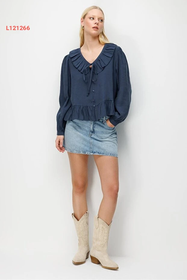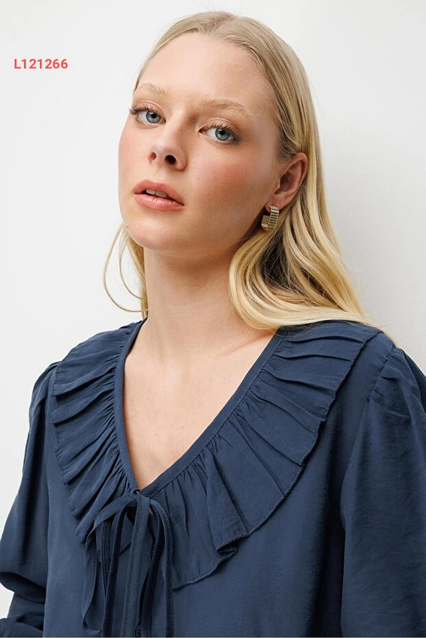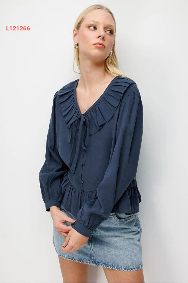 استمتعي بأناقة لا مثيل لها مع بلوزة Mixray 4813 ذات الياقة V والقصّة المنسدلة الرائعة. تأتي بلون الكحلي الجذاب مع تصميم ضيق عند الخصر وتفاصيل الريش الأنيقة، مما يجعلها الخيار المثالي لإطلالة أنيقة سواء في العمل أو اللقاءات الاجتماعية. ارتديها مع بنطال مفضل أو تنورة لتجذبين الأنظار في كل مكان.
