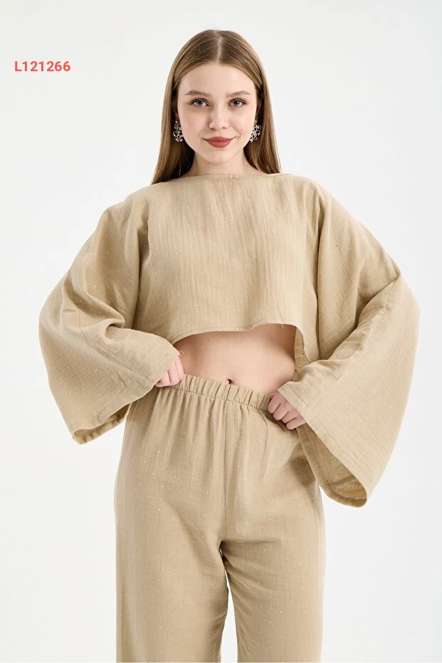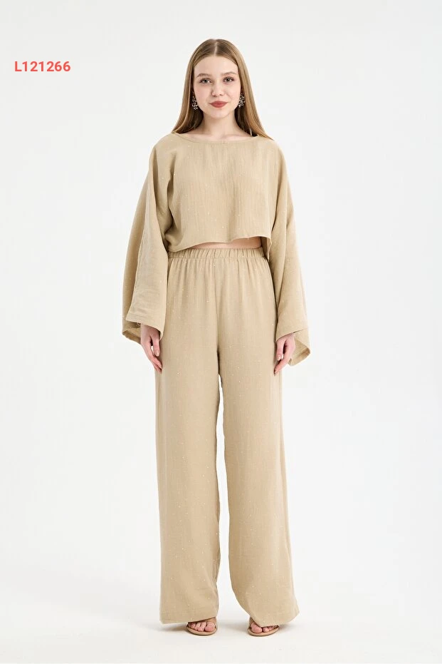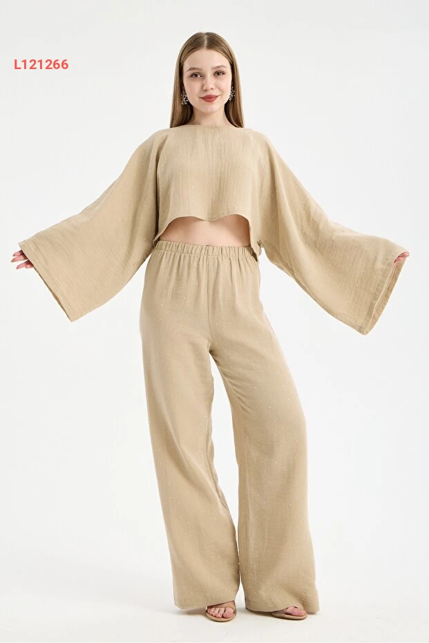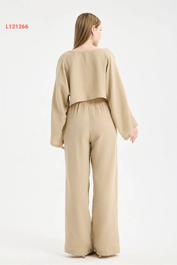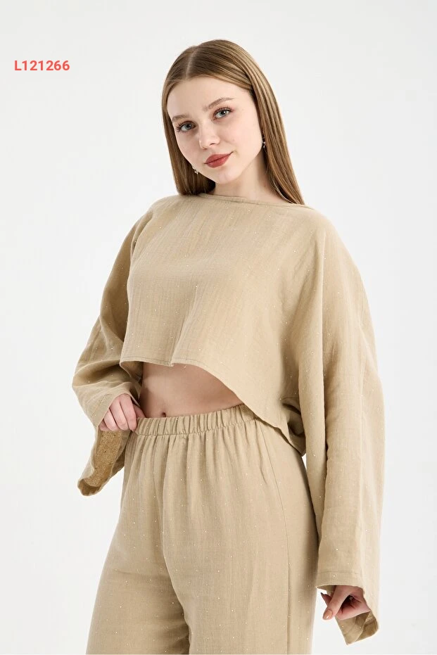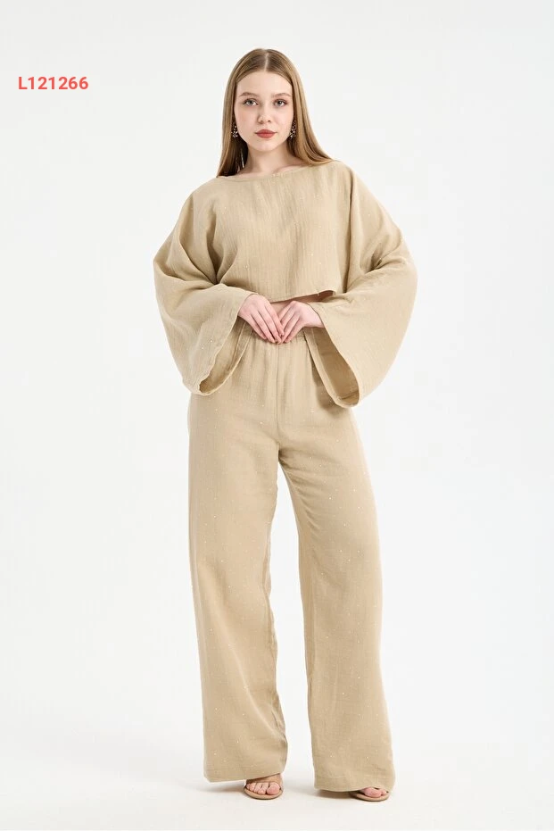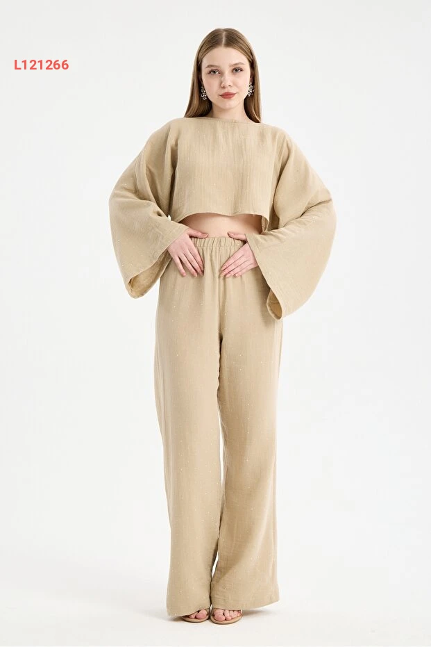 انغمس في أناقة غير تقليدية مع مجموعة Miyasa Butik، التي تضم طقم بتصميم كبير Oversize يبرز تفاصيل حجرية رائعة. مصنوع من قماش موسلين الفاخر، يجمع بين الراحة والتميز، مما يجعله الخيار المثالي لإطلالة يومية تجمع بين البساطة والأناقة. احصلي على إطلالة مميزة تنبعث منها الأناقة العصرية والثقة!