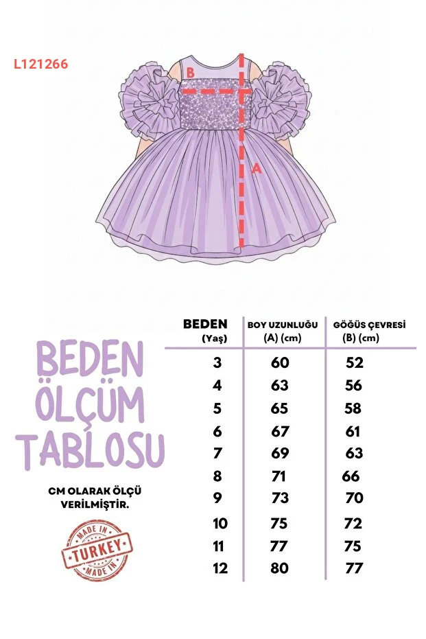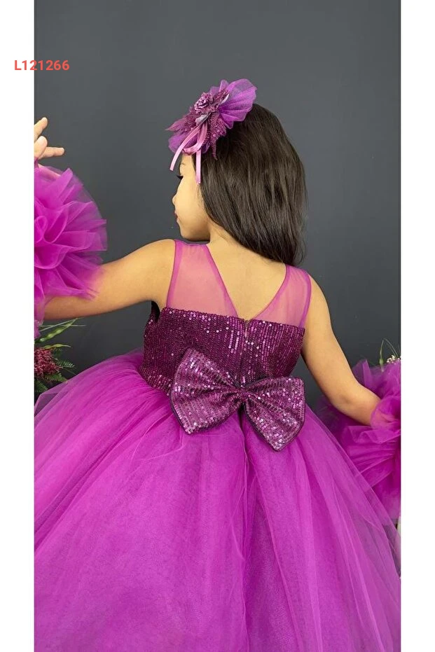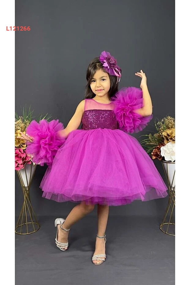فستان بنات ضخمة مع تفاصيل دانتيل وبوم بوم من منك للأطفال - لون أرجواني
