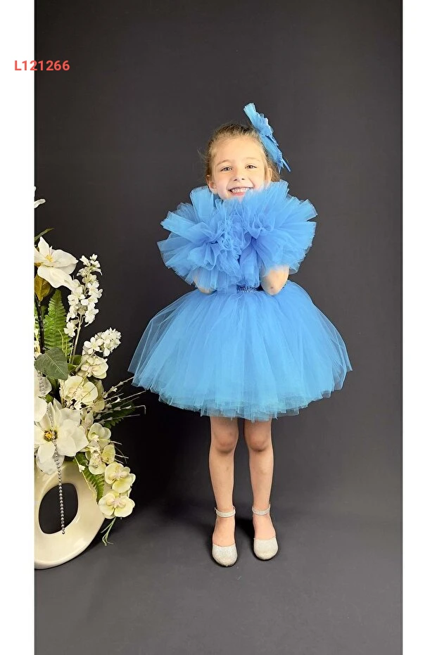 قدمي أنجلك بأناقة ساحرة مع فستان "Mnk Baby&Kids" المذهل بتصميمه الرائع الذي يأتي مع كشكشة جميلة وأكمام بون بون. يتميز بتنورة كاباريك مزينة بالترتر اللامع بلون أزرق جذاب، مما يضمن لها أن تكون نجمة كل حفلة. اجعلي لحظاتها الخاصة لا تُنسى مع هذا الفستان الفريد الذي يجمع بين الأناقة والراحة.