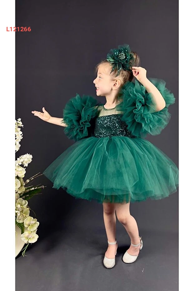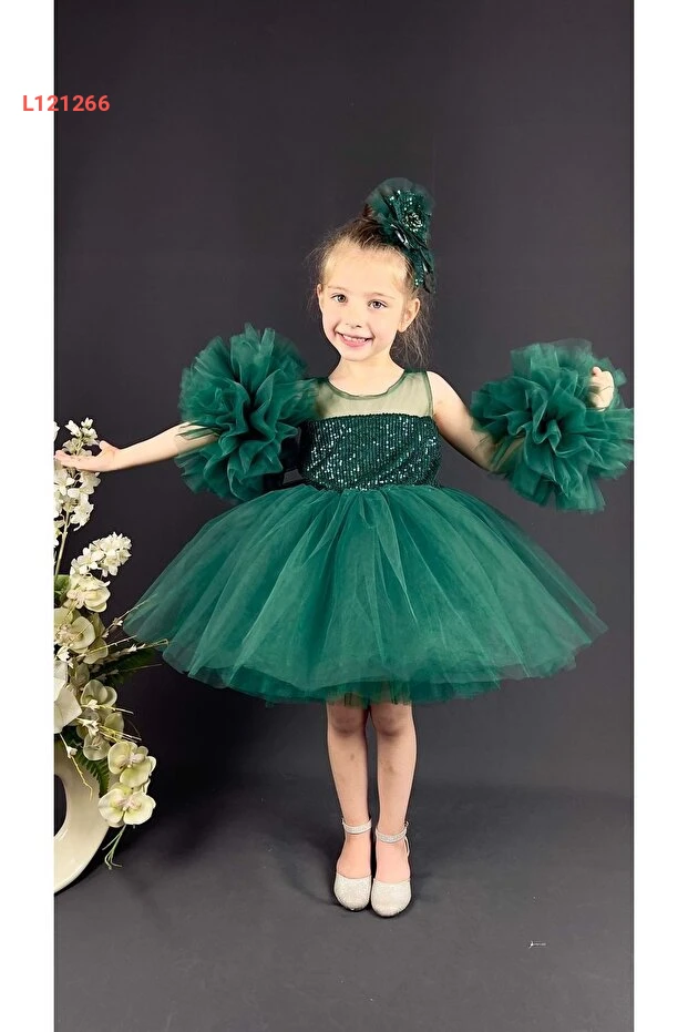 استمتعوا بأناقة لا مثيل لها مع تنورة Mnk Baby&Kids المصنوعة من الشيفون الرقيق، التي تضم تفاصيل رائعة من الدانتيل والخرز اللامع. تصميمها الفريد مع الأكمام المزينة بالكورال والتطريز يجعلها خياراً مثالياً لتحضير حفلات الأطفال والمناسبات الخاصة، مما يضمن أن تبدو كل فتاة كأميرة في هذا الفستان الأخضر الجميل.