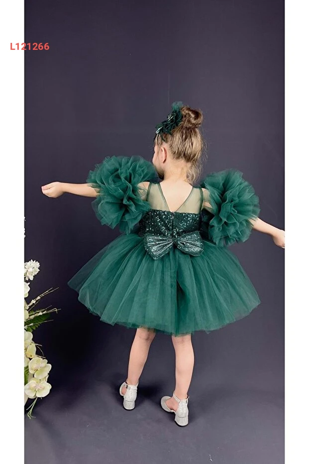 تنانير حفلات فاخرة للأطفال من Mnk بتصميم شيفون مزخرف بالخرز والدانتيل باللون الأخضر