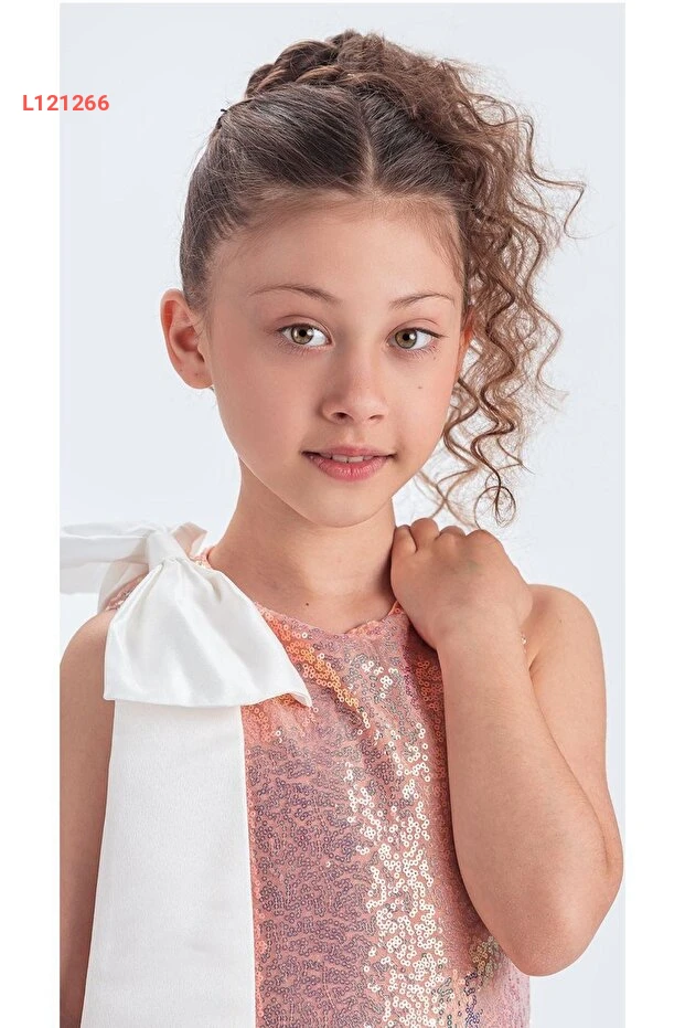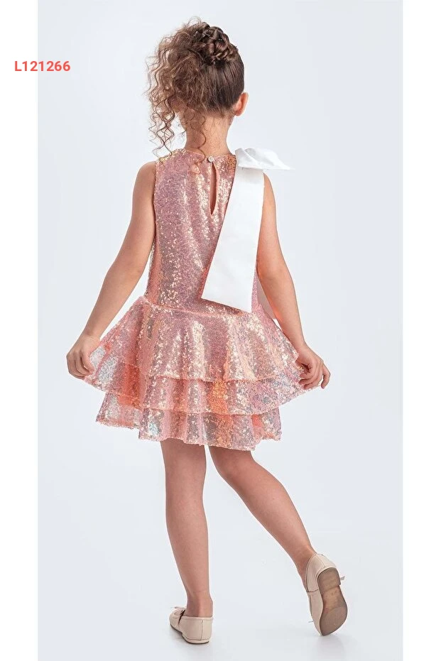 فستان سهرة للبنات مزين بأحجار لامعة من MNK Baby&Kids - لون سمون