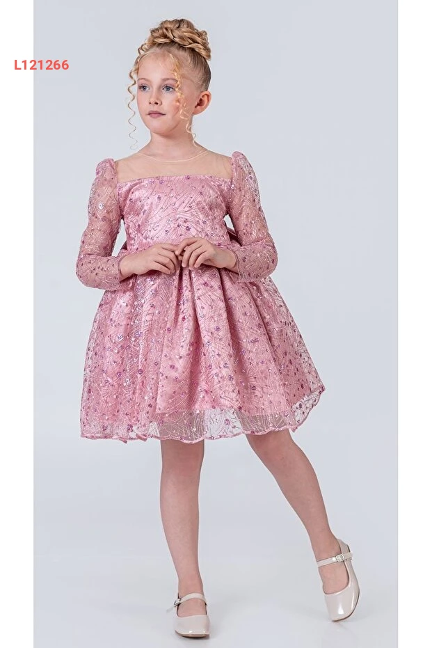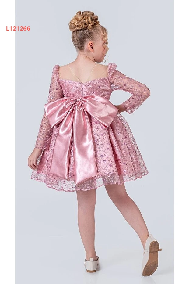 فستان زفاف للفتيات من مانك بيبي وكيدز بتصميم روح رشيق - م00983 باللون الوردي