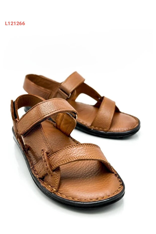 صندل رجالي مصنوع من الجلد الحقيقي مع إغلاق فيلكرو - لون بني شيريڭل