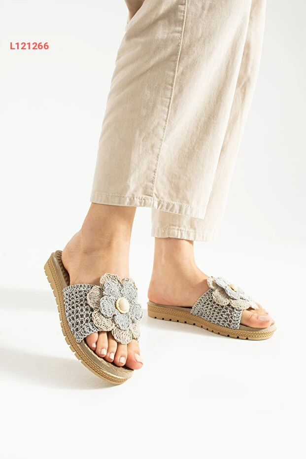 استمتع بأناقة وجمال الطبيعة مع حذاء "Moda Devrin" الرمادي الفريد من نوعه، حيث يجمع بين تصميمه العصري وزهوره الرقيقة. مصنوعة من قش متين، توفر هذه الصنادل راحة لمختلف الأنشطة في الهواء الطلق والداخل، مما يجعلها الخيار المثالي لإطلالتك اليومية. تألقي بأسلوبك واستمتعي بالراحة في كل خطوة!