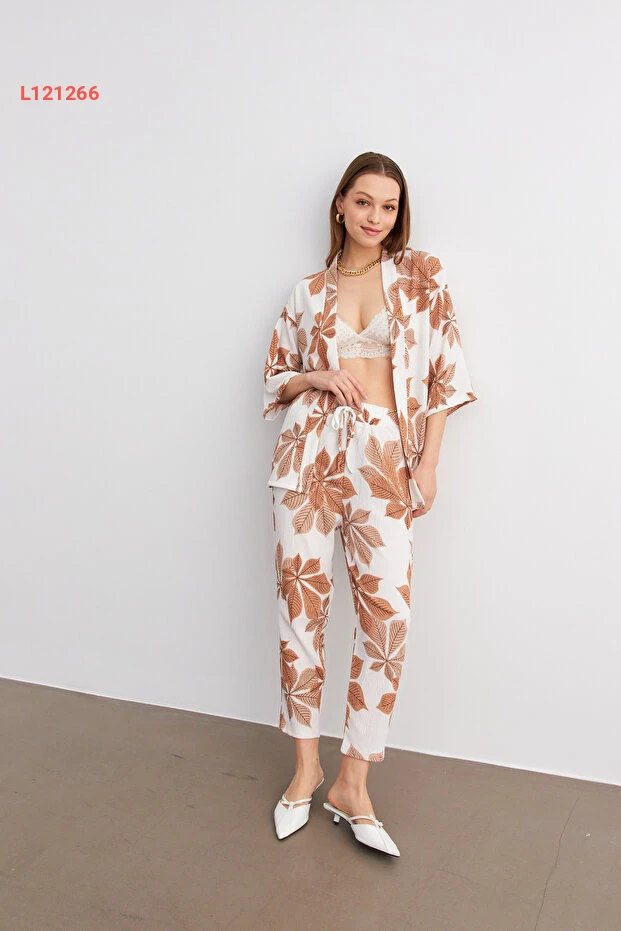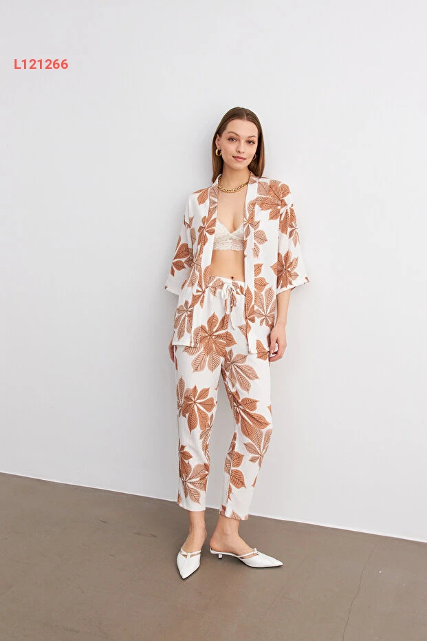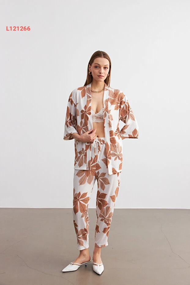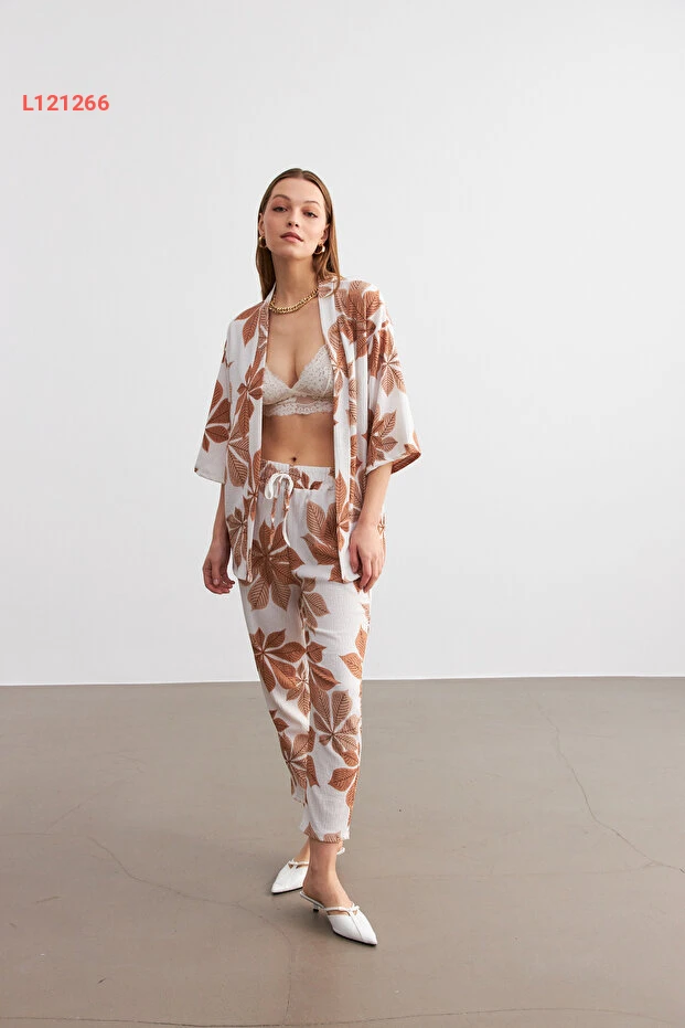استمتعي بالأناقة العصرية مع طقم الكيمونو والجينز من MODAGEN بتصميمه الفريد بالألوان الكاميلية والبيضاء المزدانة بالزهور. يجمع هذا الطقم بين الراحة والموضة، مما يجعله مثاليًا لمناسباتك اليومية أو الخروجات الأنيقة. اجعليه خيارك المفضل لتضيفي لمسة من الأنوثة والجاذبية إلى إطلالتك.