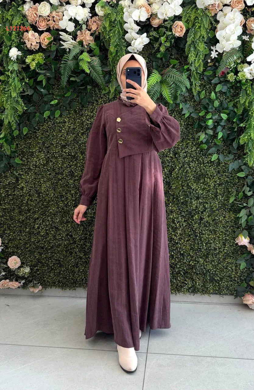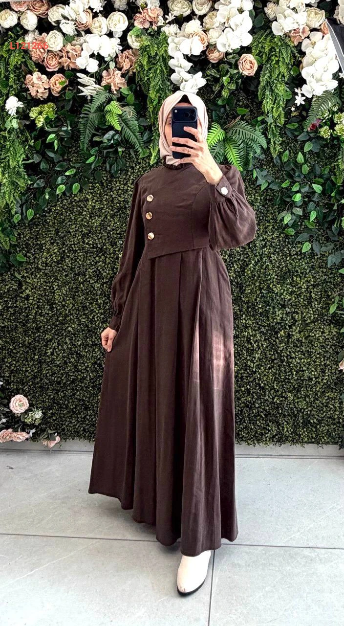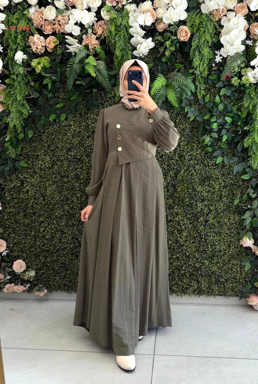 فستان مودال طويل بأزرار جانبية