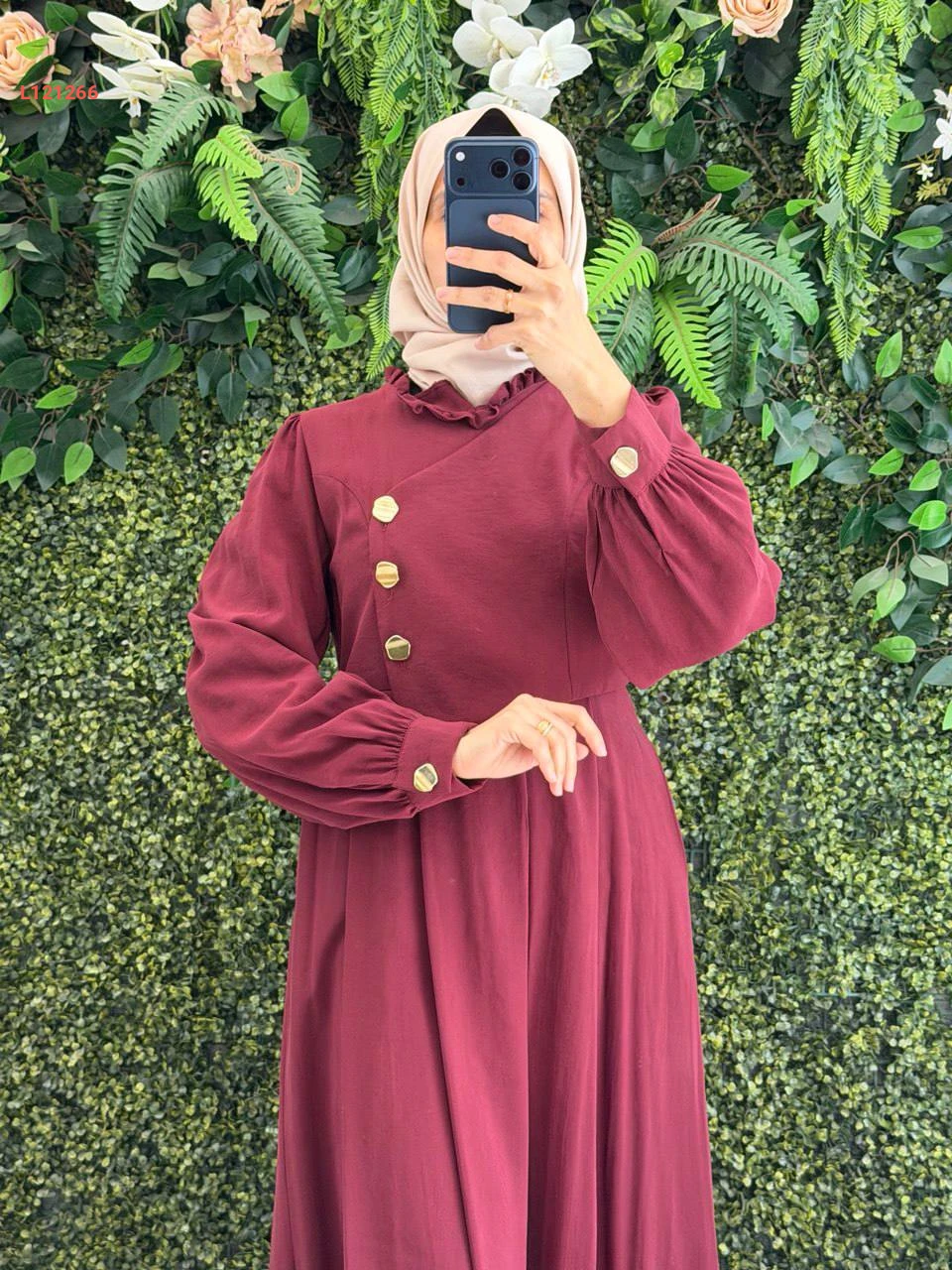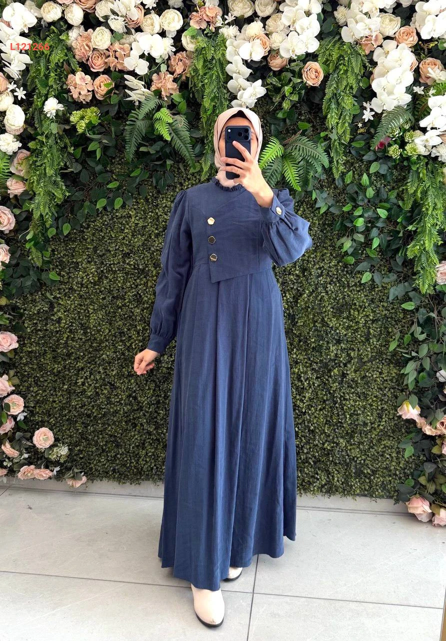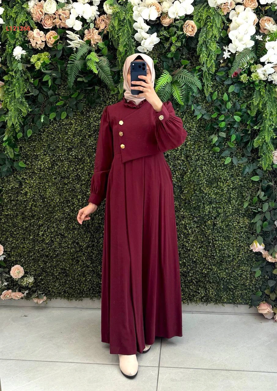 فستان مودال طويل بأزرار جانبية