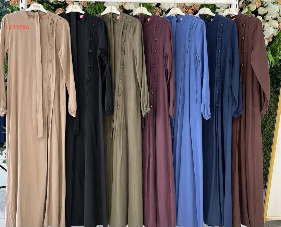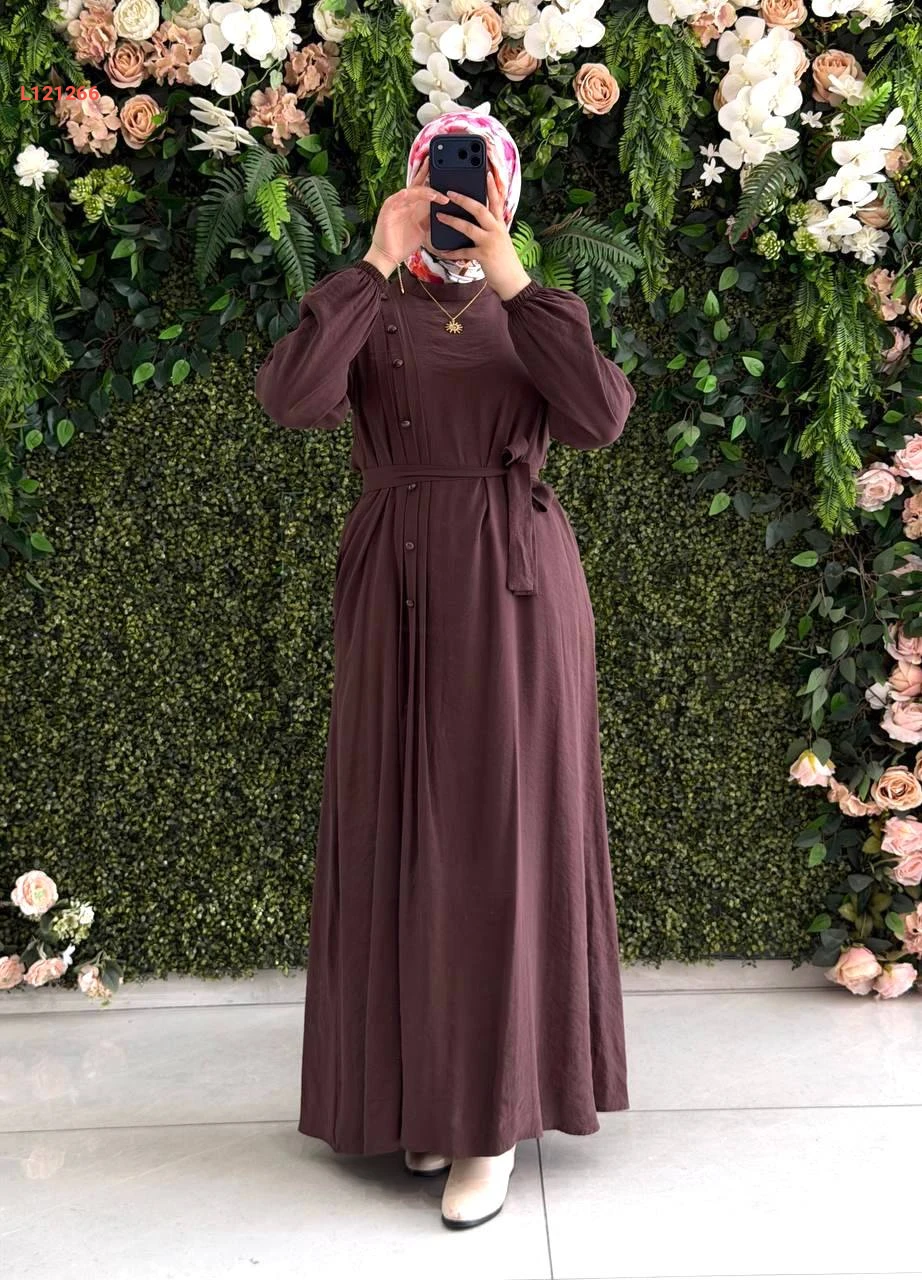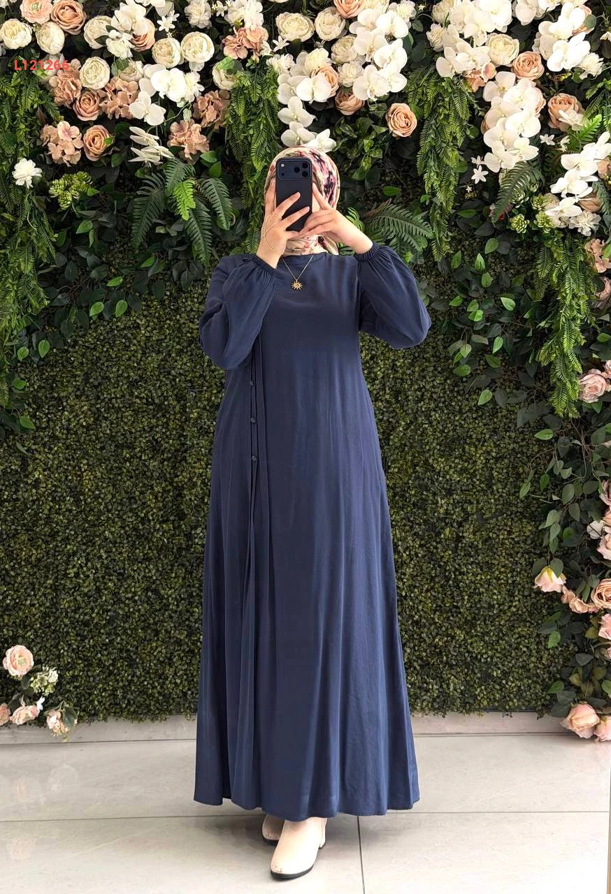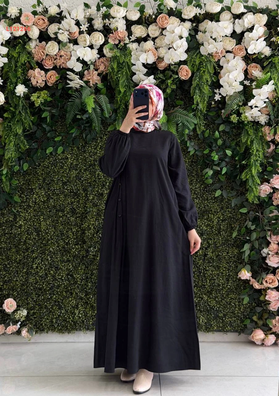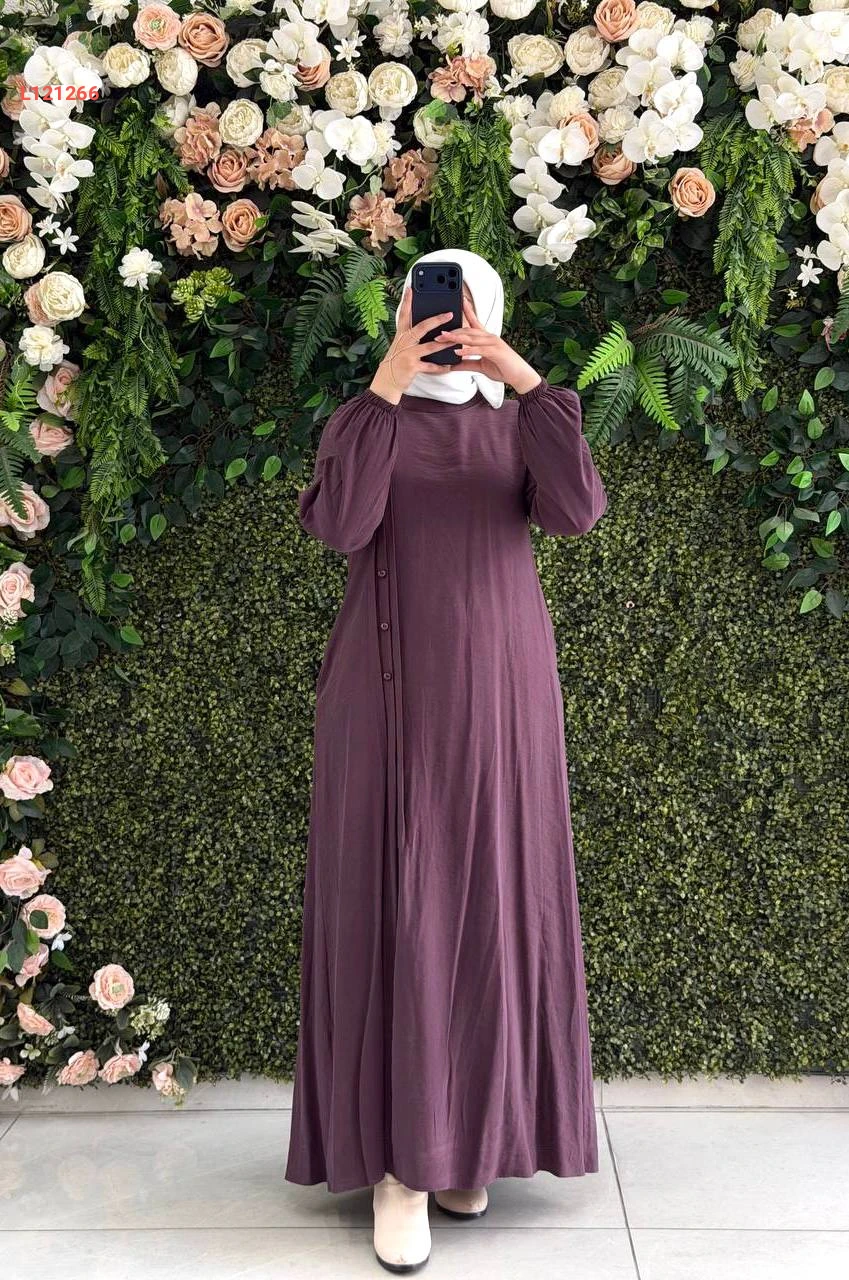 فستان مودال طويل بأزرار جانبية