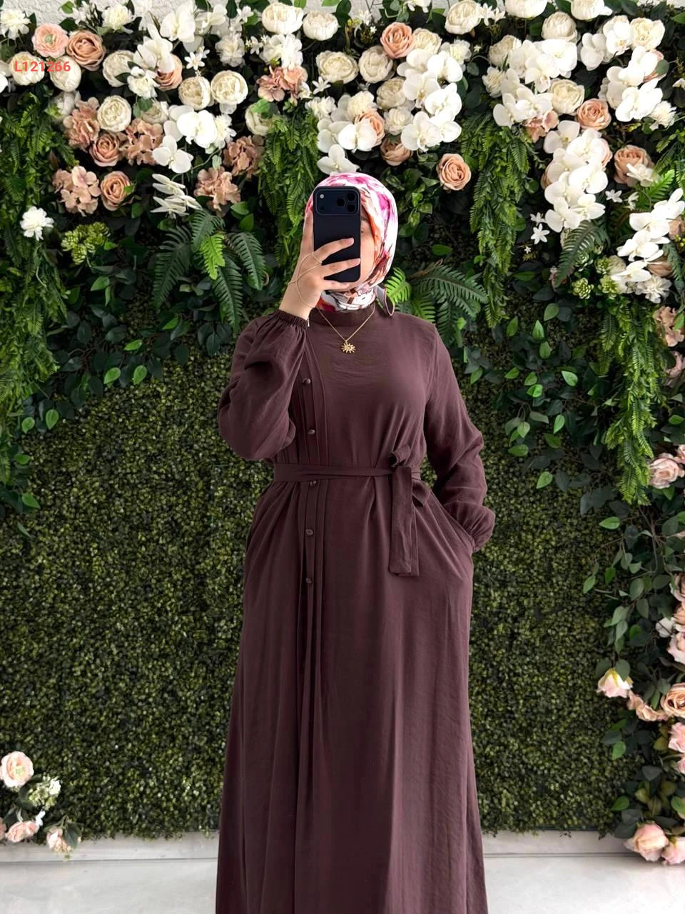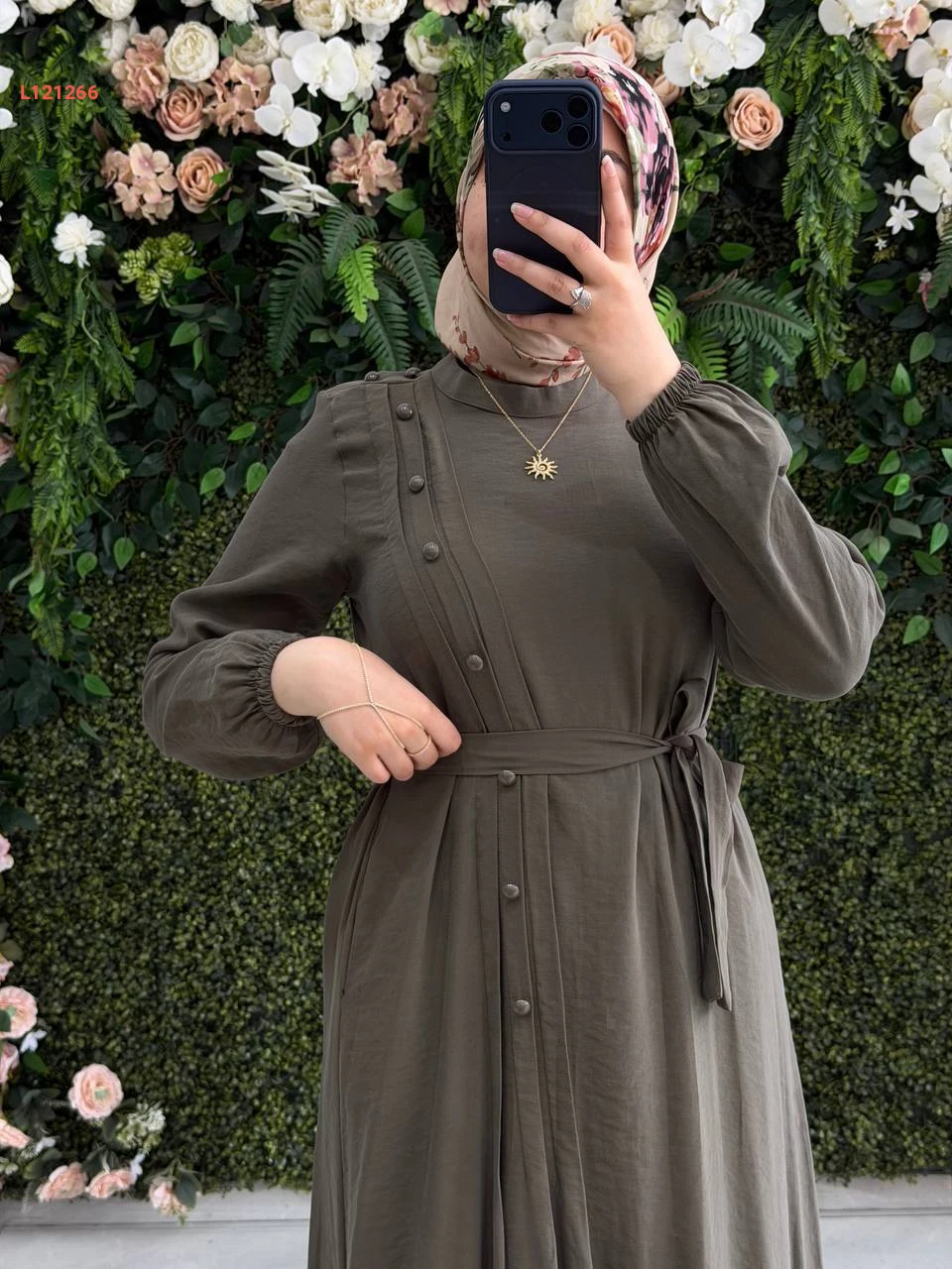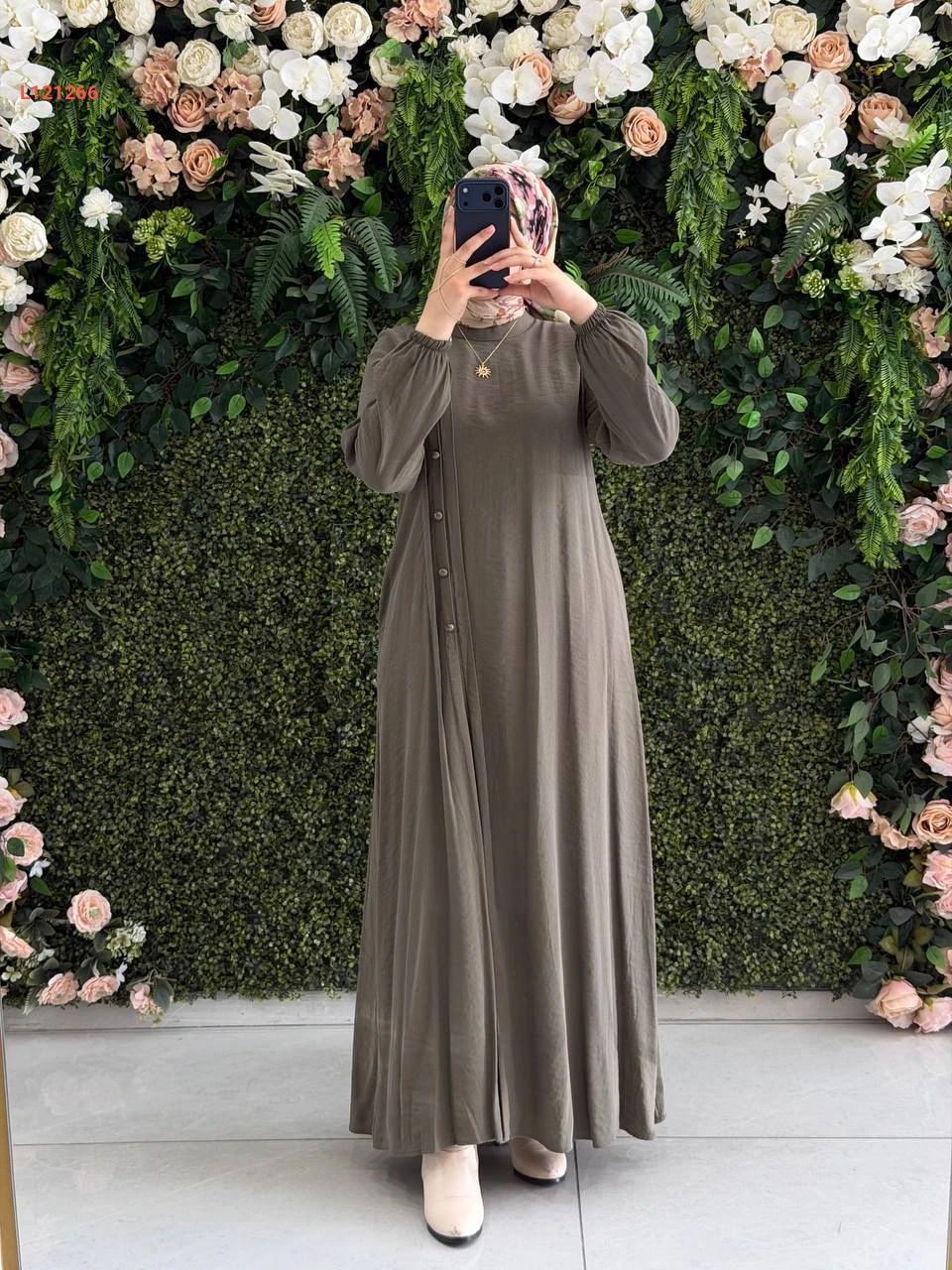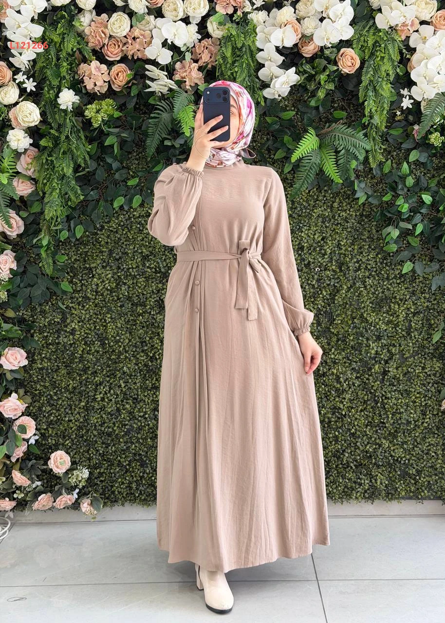 فستان مودال طويل بأزرار جانبية