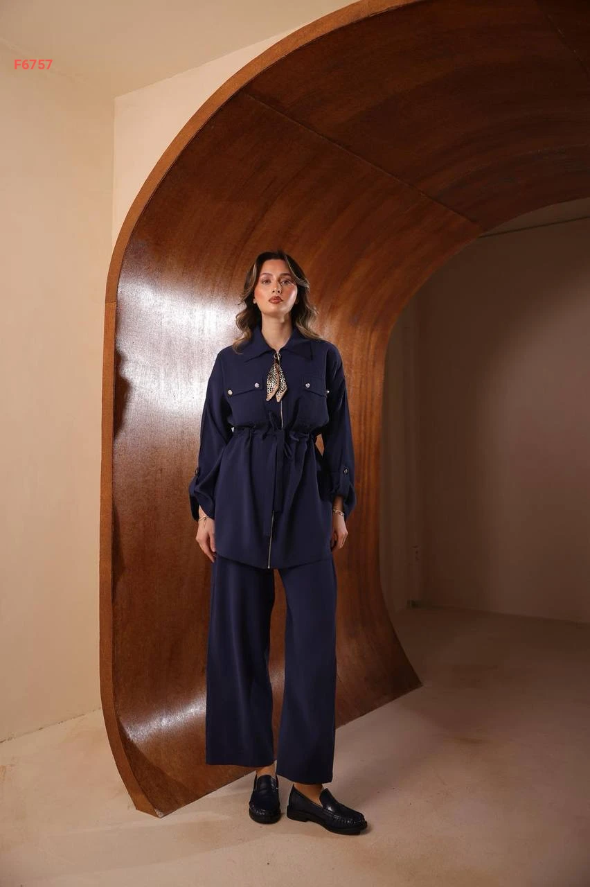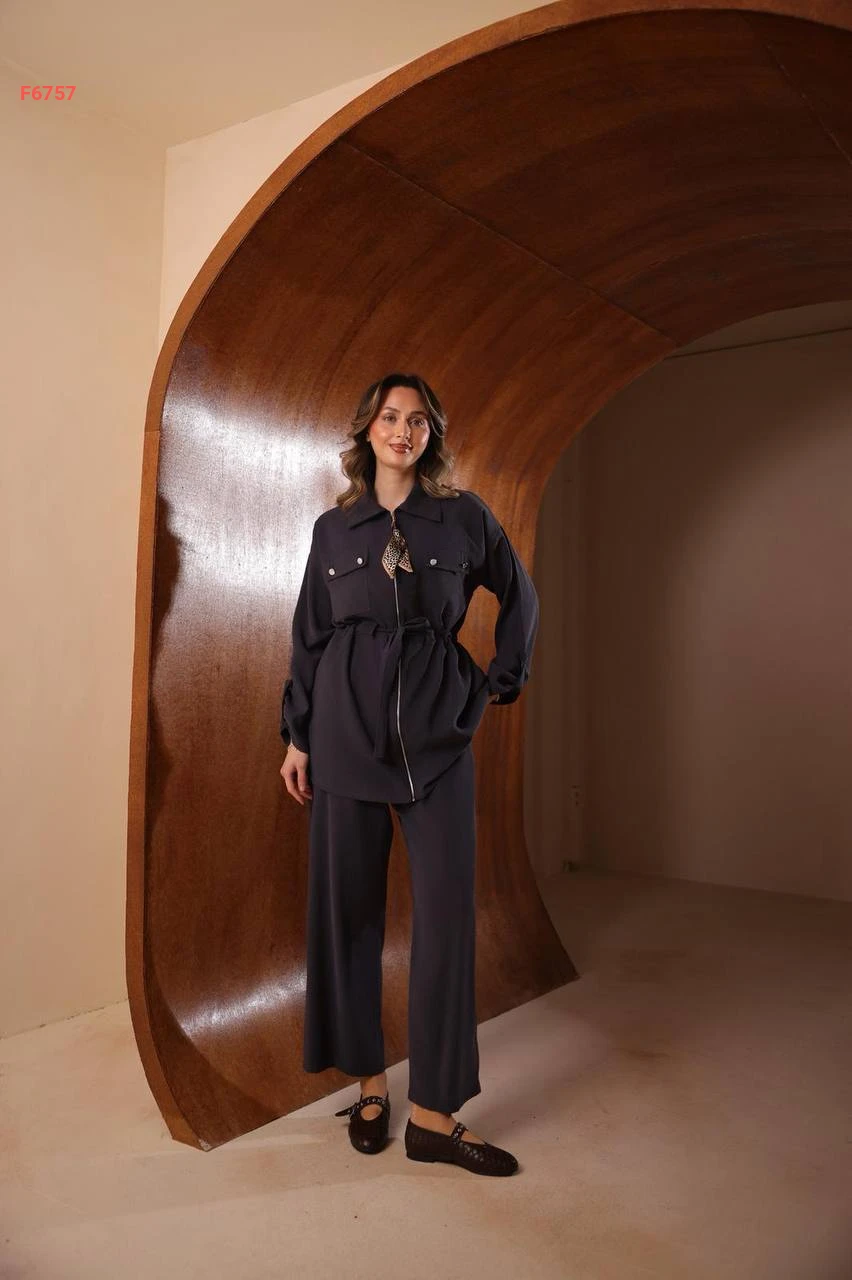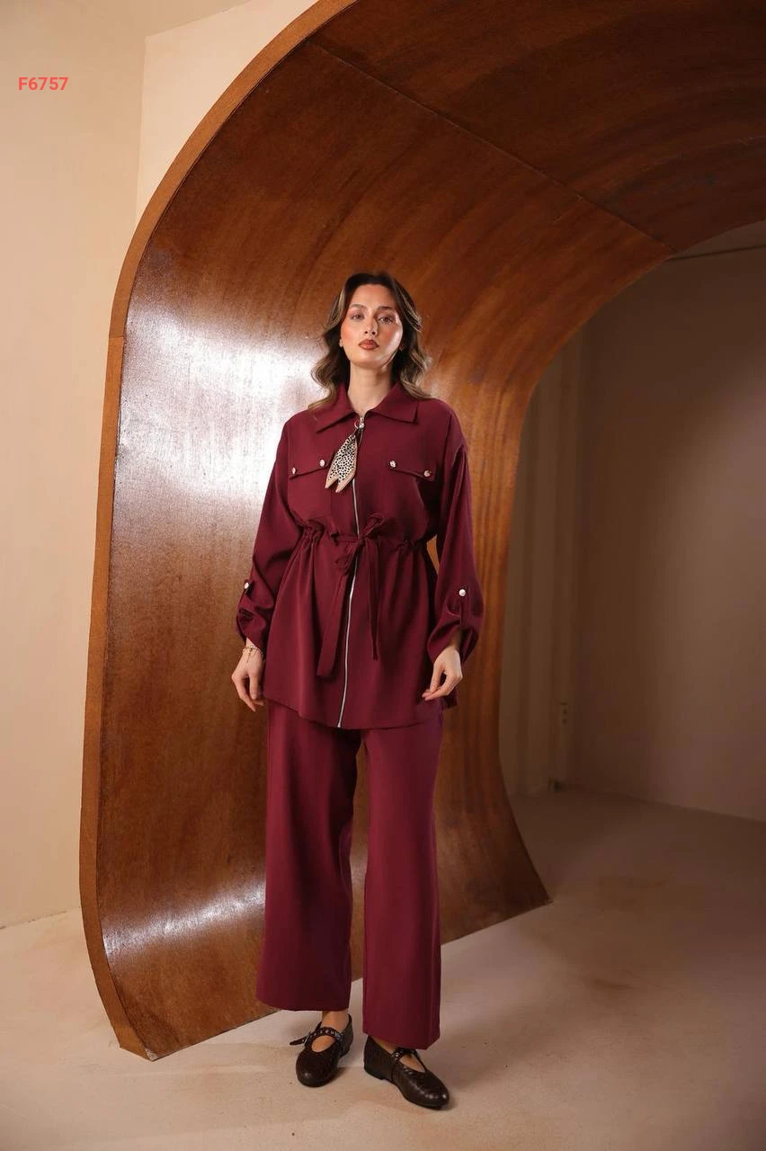 طقم بنطال مودال وقميص بسحاب