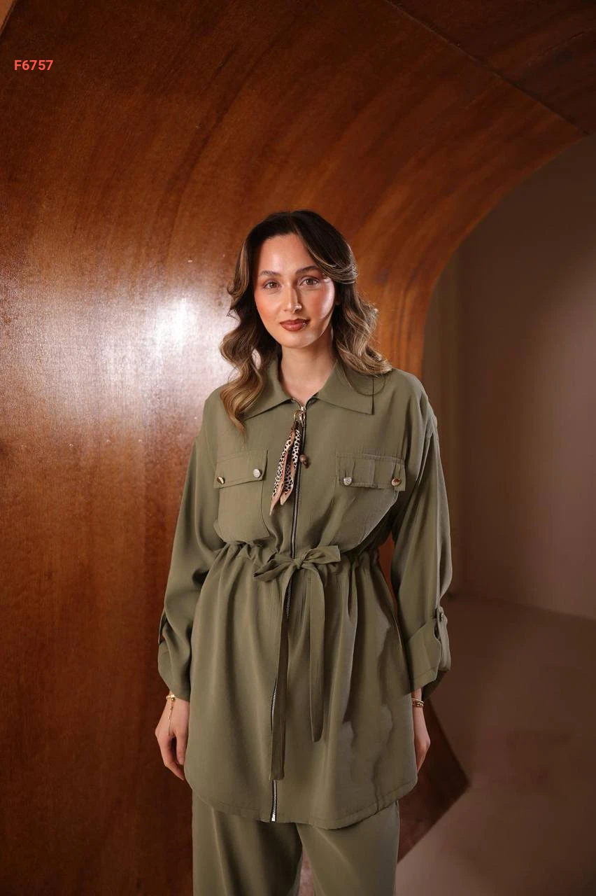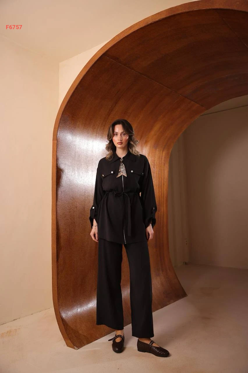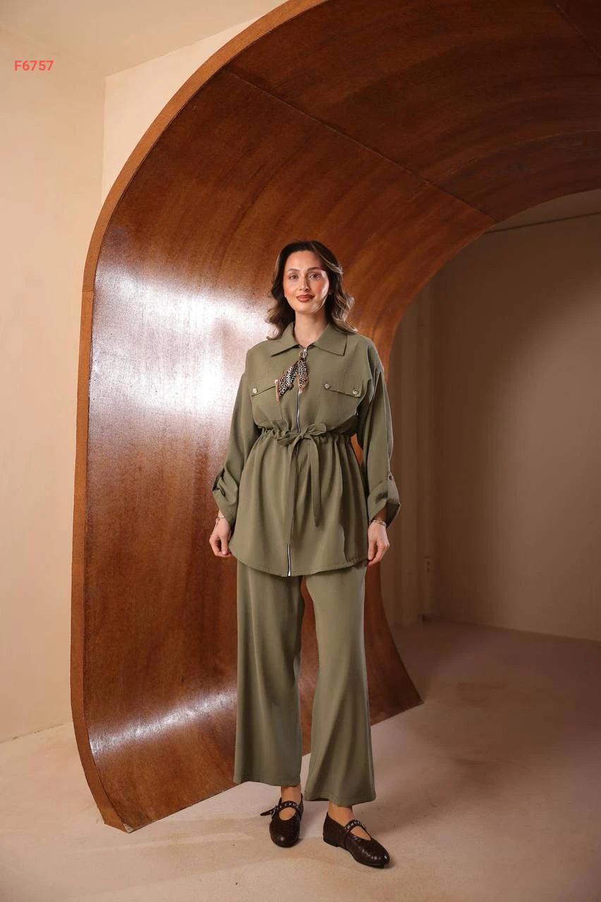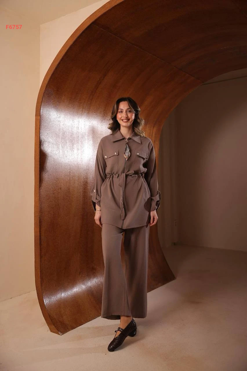 طقم بنطال مودال وقميص بسحاب