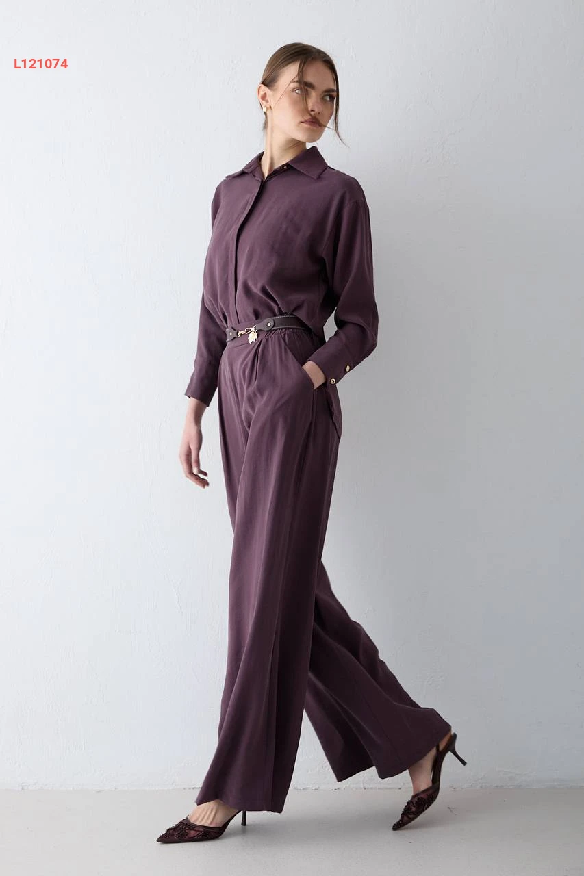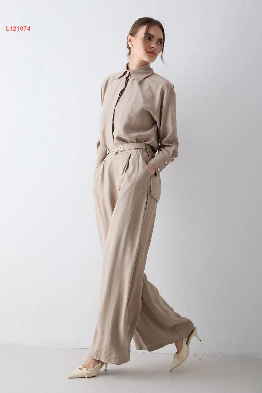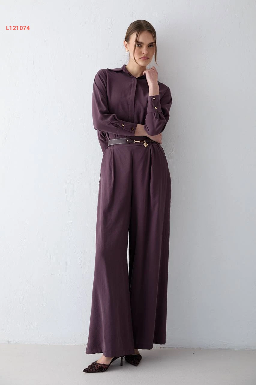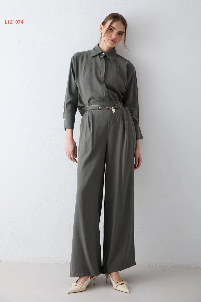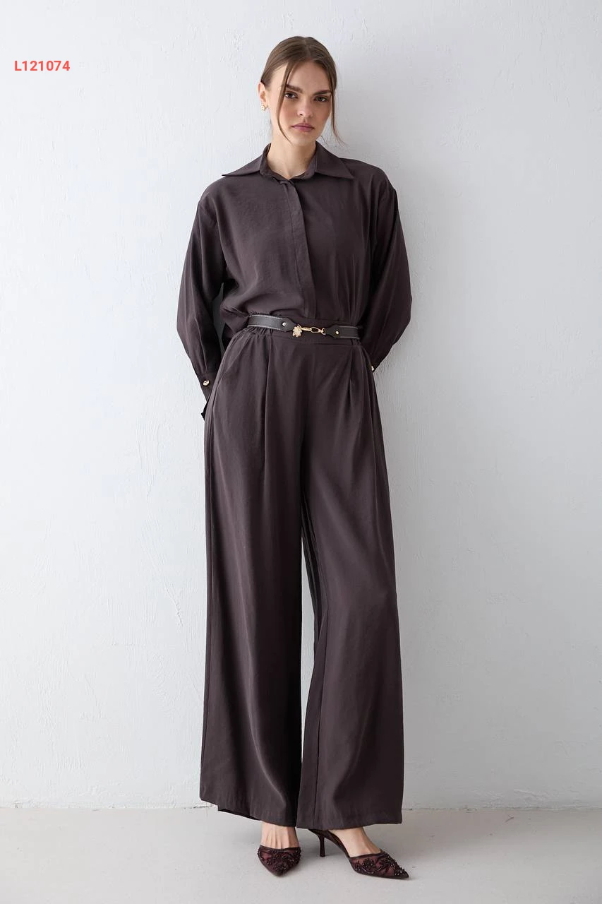طقم بنطال مودال بحزام مع قميص