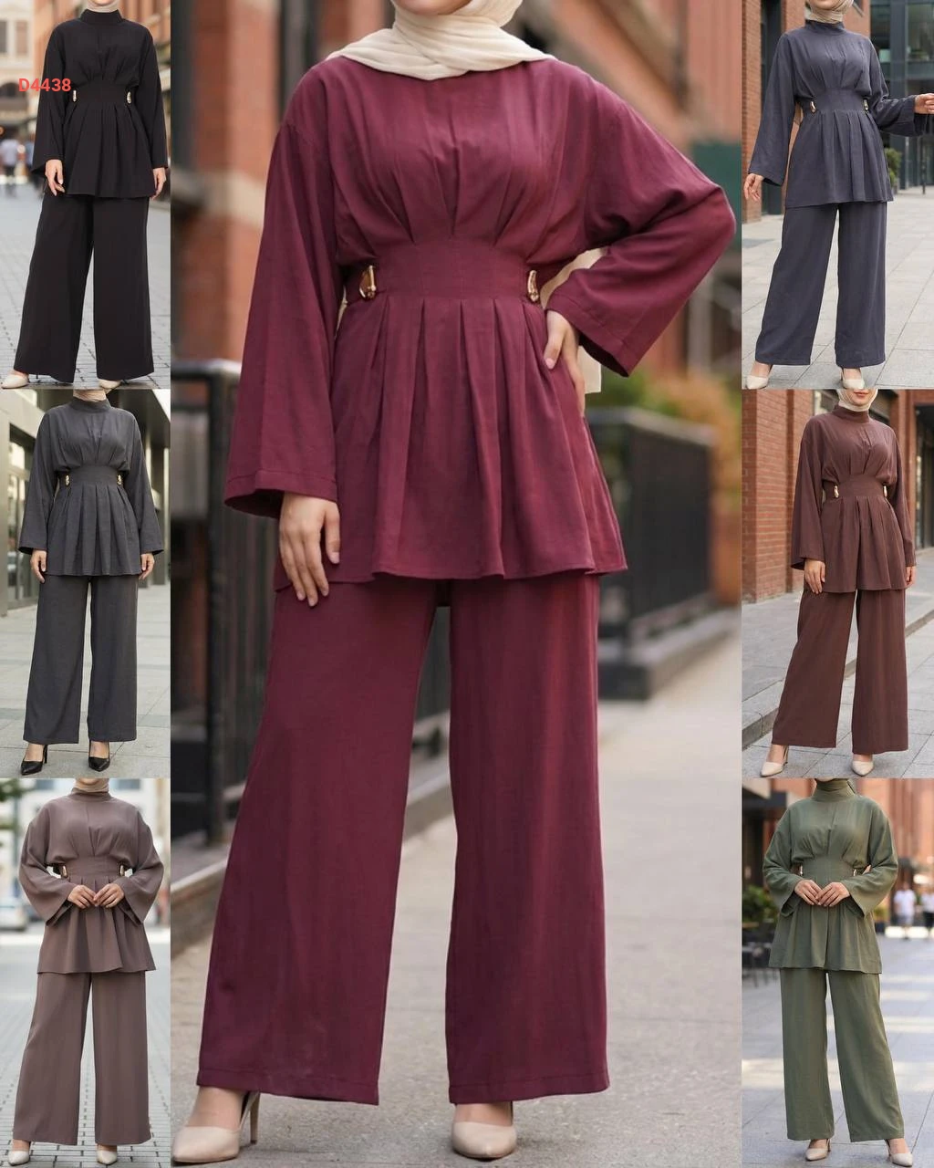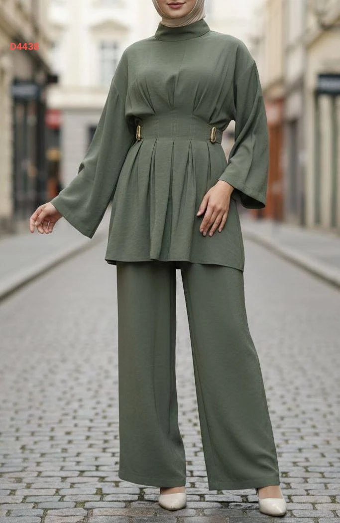 طقم بنطال مودال وتونيك مخصر باكسسوار
