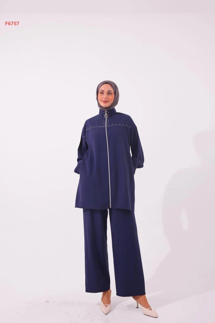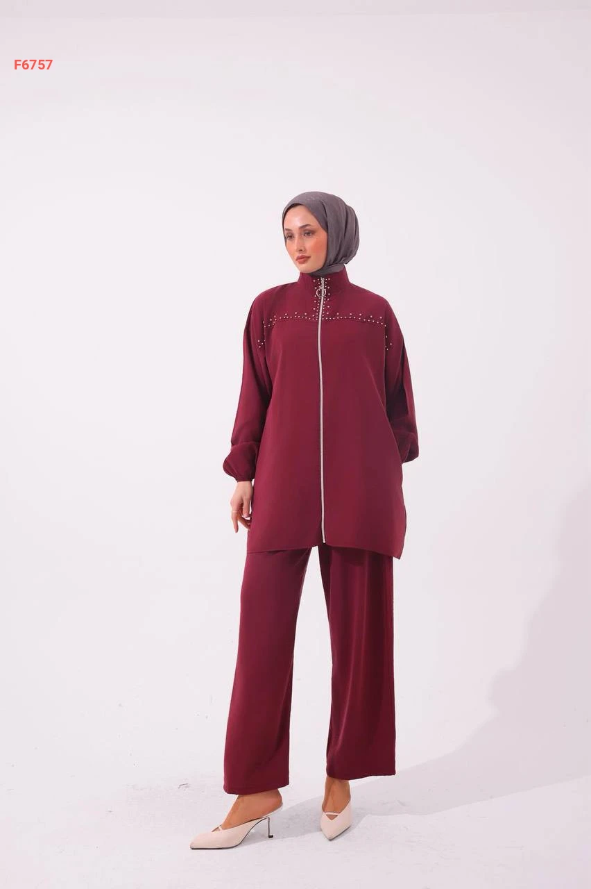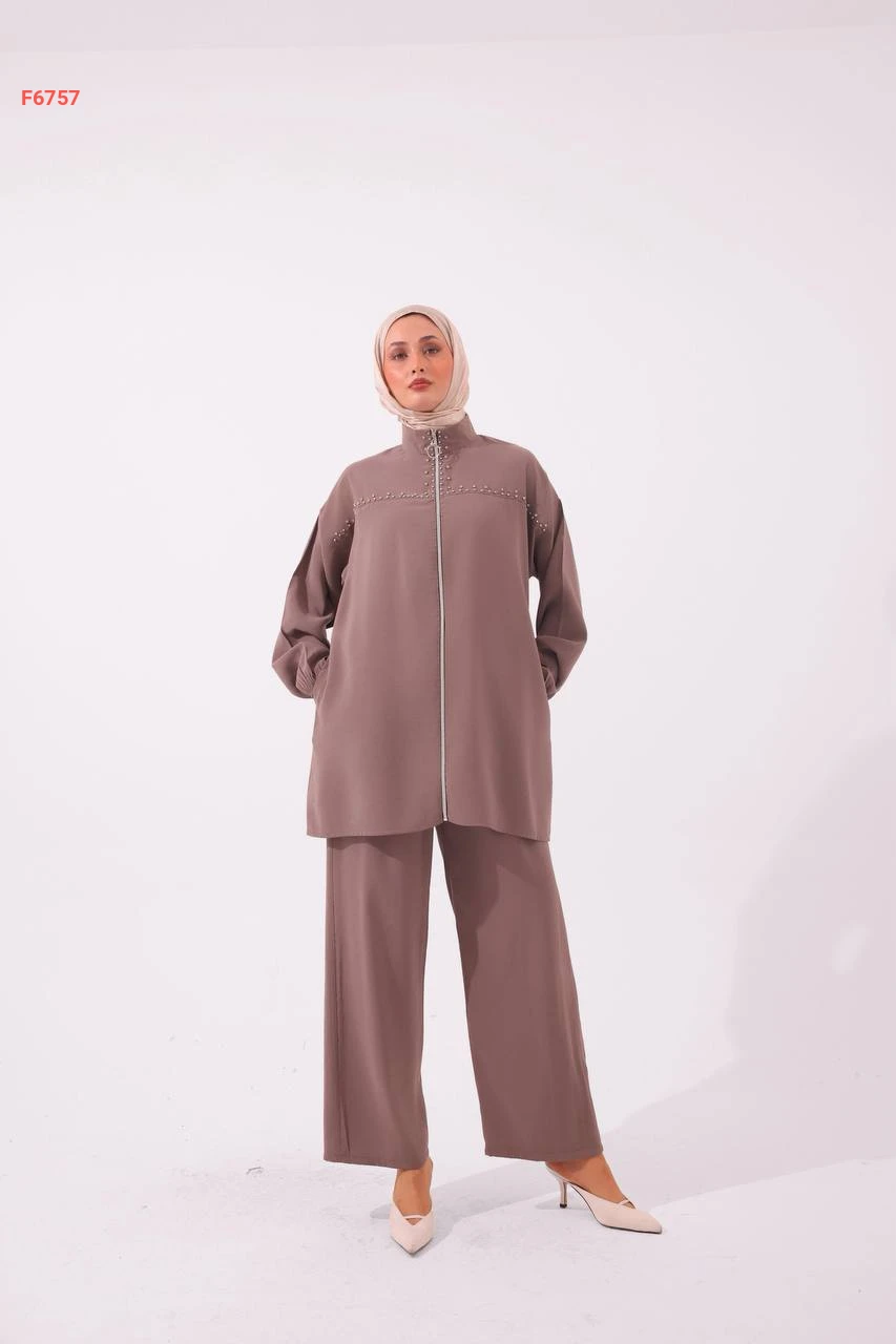 طقم بنطال مودال وجاكيت مطرز أحجار