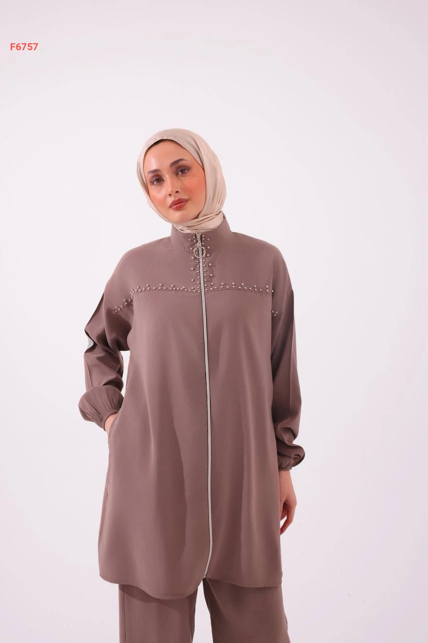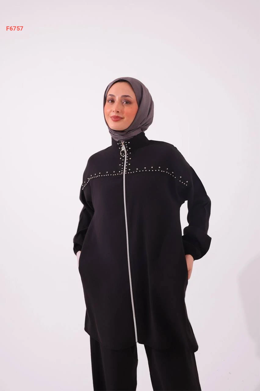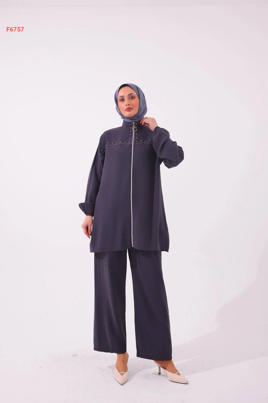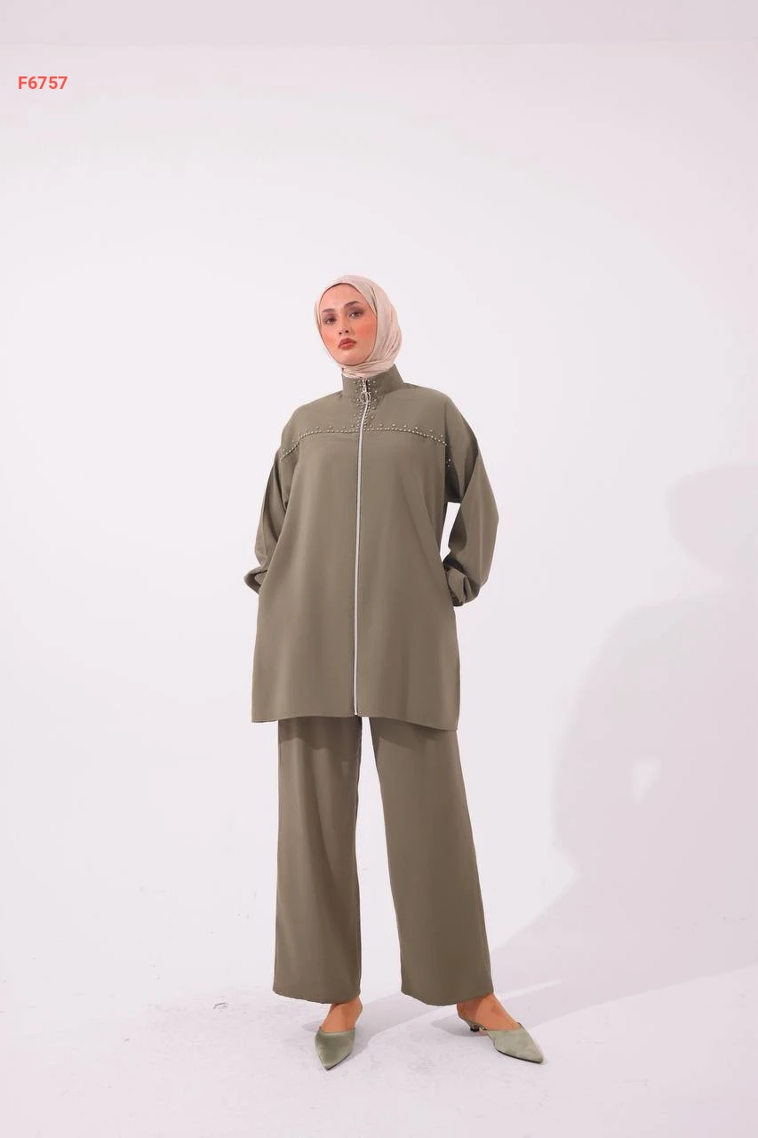 طقم بنطال مودال وجاكيت مطرز أحجار