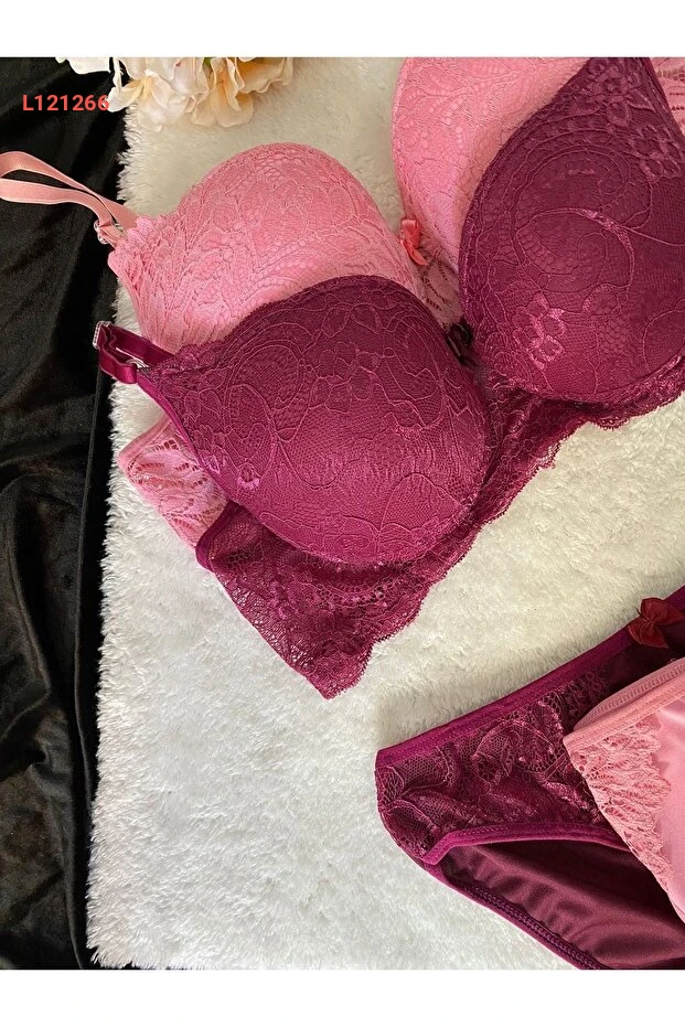 مجموعة صدرية مزدوجة بلون بودرة وبورجوندي مع حشوة ودعامة للنساء