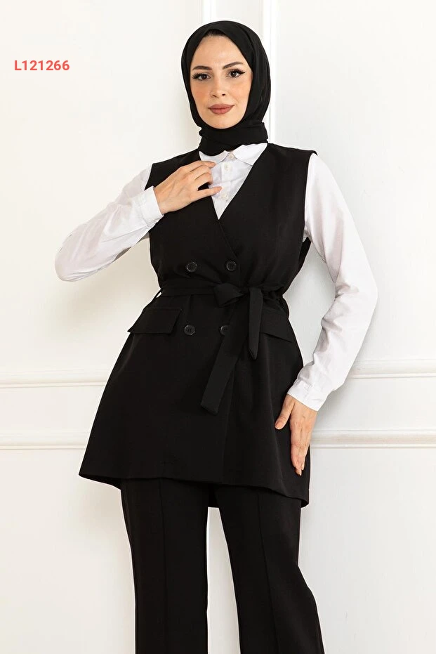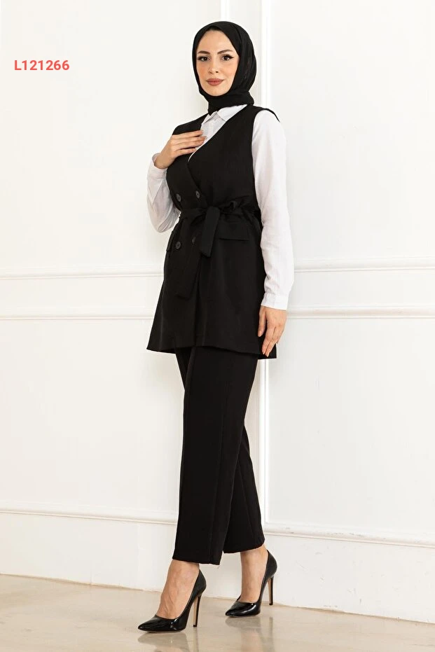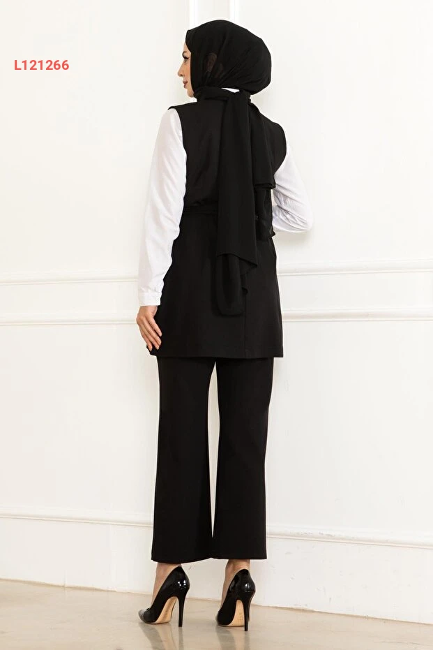احصلي على إطلالة أنيقة ومميزة مع مجموعة ModaMihram Kemer Detaylı İkili Takım باللون الأسود. تتميز هذه المجموعة بتفاصيلها الرائعة وحزامها الأنيق الذي يعزز من قوامك، مما يجعلها الخيار المثالي لكل المناسبات. اجعلي كل لحظة تنبض بالأنوثة والجمال مع لمسة فريدة من الأناقة.