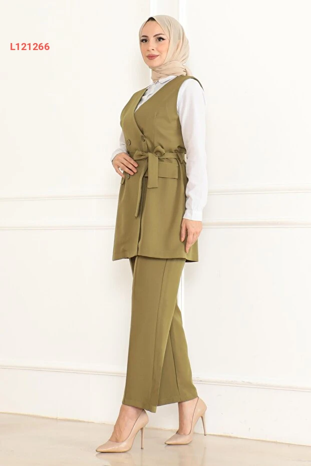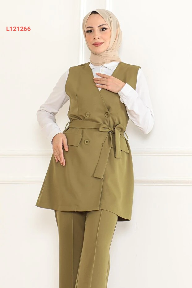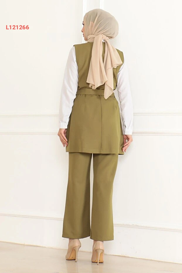 استمتع بتألق وأناقة لا مثيل لها مع مجموعة مودا مِهرام ذات التفاصيل الرائعة! يأتي هذا الطقم الثنائي بلون هaki الجذاب، مما يجعله مثاليًا لكل المناسبات. تصميمه الفريد مع حزام يعكس أسلوبك العصري ويمنحك الراحة والتميز في كل خطوة.