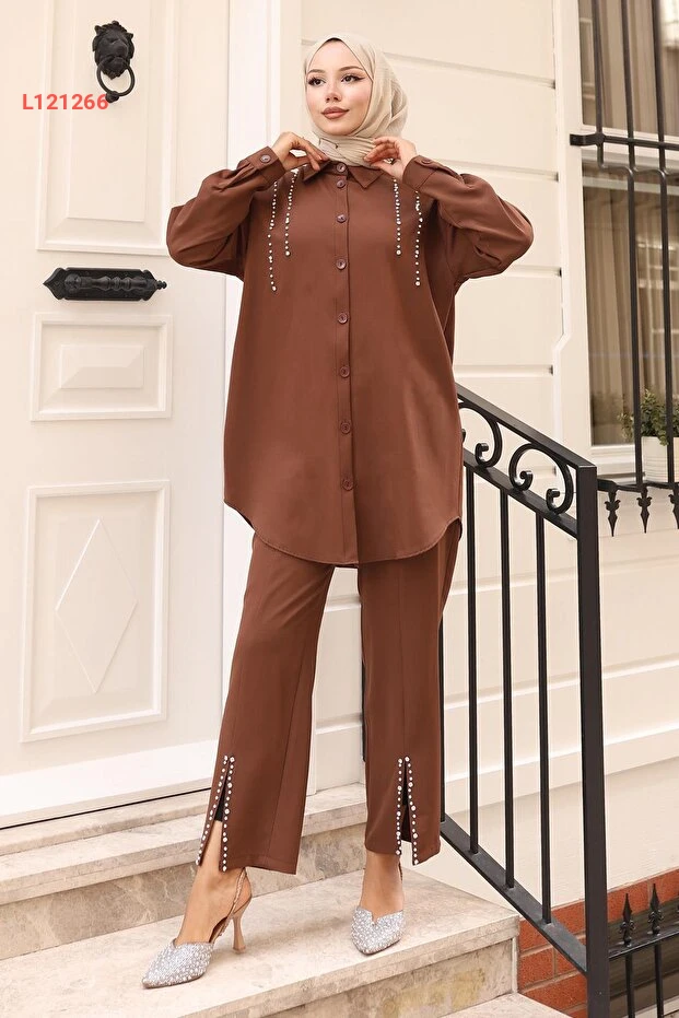 اكتشفي أناقة لا مثيل لها مع طقم ModaMihram ذو التفاصيل اللؤلؤية. يجمع هذا الطقم البني بين الراحة والأسلوب العصري، مما يجعله خيارًا مثاليًا لإطلالاتك اليومية والمناسبات الخاصة. مع كل لمسة لؤلؤية، ستشعرين بالثقة والجاذبية في كل مرة ترتدينه.