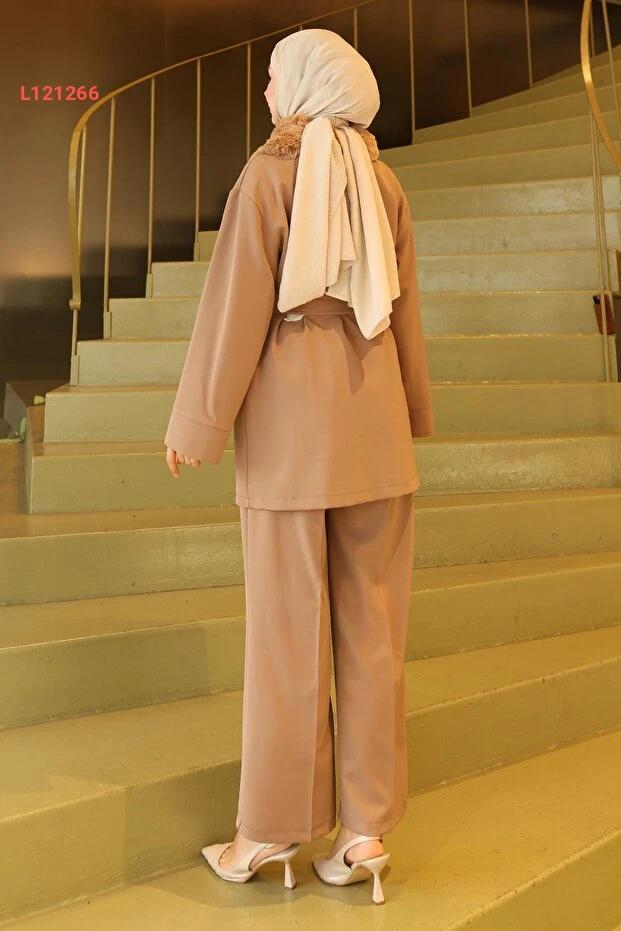 تميزي بإطلالة أنيقة ومميزة مع مجموعة ModaMihram Yakası Kürk Detaylı بتفاصيل الفرو الفاخرة بلون الفيزون. تجمع هذه المجموعة بين الراحة والأناقة، حيث تضفي لمسة من الرقي على خزانتك وتضمن لك إطلالة متكاملة في أي مناسبة. استمتعي بجاذبية لا مثيل لها مع كل ارتداء!