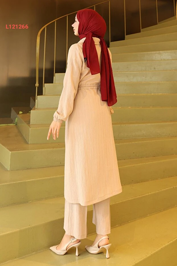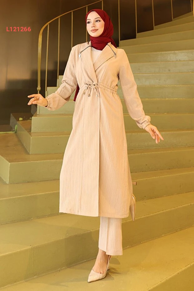 استمتع بأناقة لا مثيل لها مع طقم "ModaMihram" بتفاصيل بسحاب، حيث يجمع بين الراحة والموضة بأسلوب مثالي. بلون بيج جذاب، يوفر لكِ هذا الطقم مظهراً عصريًا يجعلكِ تتألقين في كل مناسبة، بينما يضمن لكِ راحة حركة مثالية طوال اليوم.
