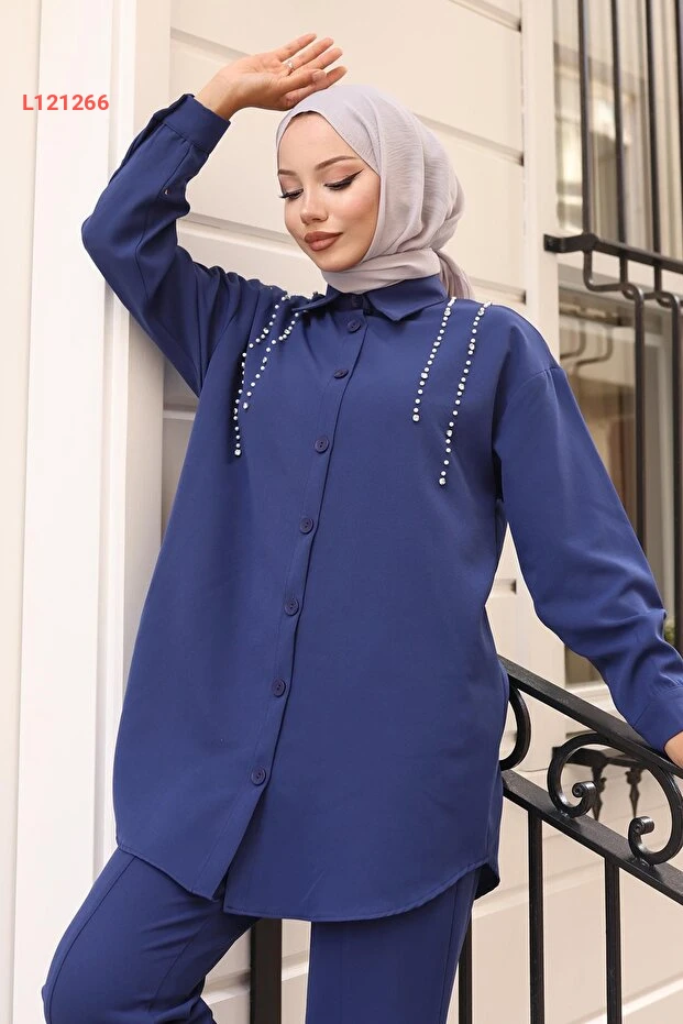 استمتع بإطلالة أنيقة ومميزة مع طقم "ModaMihram" بالتفاصيل اللؤلؤية، المصنوع بلون إنديغو الجذاب. يجمع هذا الطقم بين الراحة والفخامة، ليمنحكِ تألقاً مثالياً في كل مناسبة. مثالي للمرأة العصرية التي تبحث عن أسلوب يجمع بين التقاليد والحداثة.
