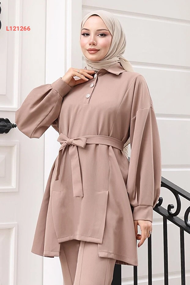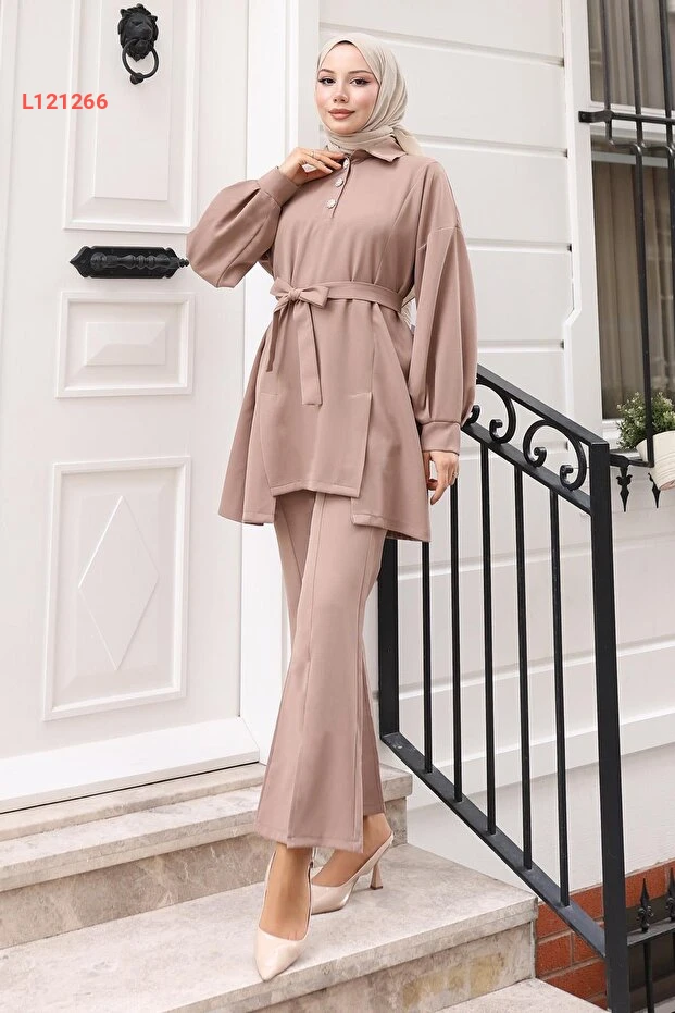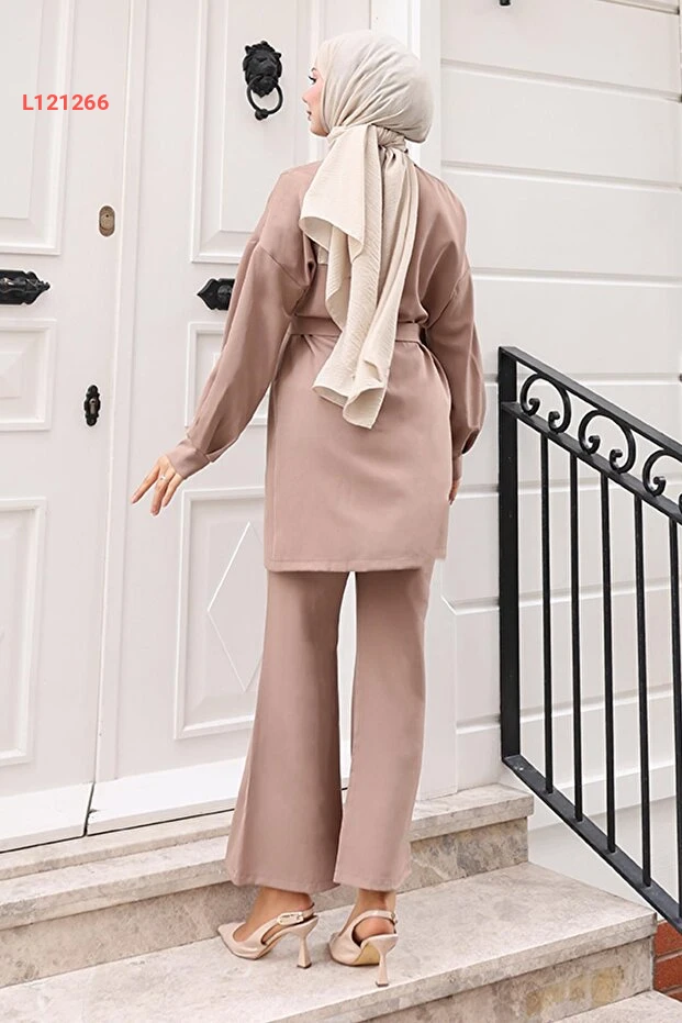 استمتعي بأناقة لا تضاهى مع طقم "ModaMihram Yırtmaçlı"، المصمم بلون البيج الفاتح الجذاب. تمنحكِ الفتحة الجانبية لمسة عصرية تبرز جمالك، بينما يوفر القماش الراقي الراحة والحرية في الحركة. اختاري التفرد والتميز في كل مناسبة!