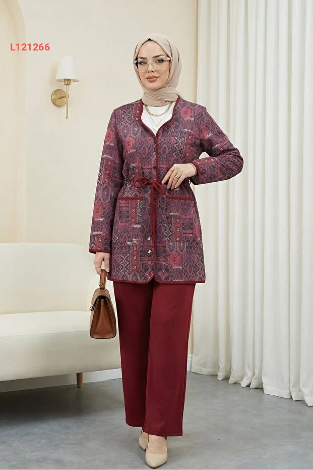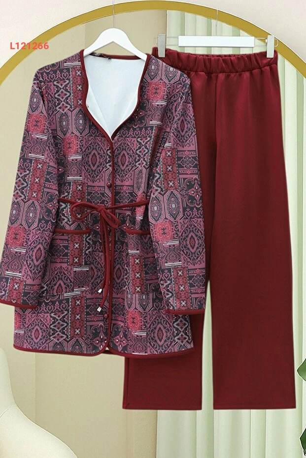 ارتقِ بإطلالتك مع طقم Modamorfo Beli Bağlamalı مزدوج الجيب المصنوع من قماش اسكوبا، الذي يجمع بين الأناقة والراحة في تصميم مبتكر بلون Bordeaux الجذاب. يتميز هذا الطقم برباط الخصر القابل للتعديل الذي يضيف لمسة من الأناقة، بينما توفر الجيوب العميقة عملية مثالية تناسب احتياجاتك اليومية. اجعلي كل لحظة مليئة بالتميز والراحة مع هذا الاختيار الرائع!