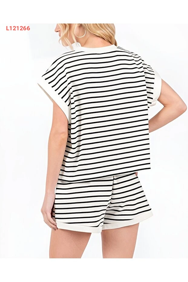 استمتع بأناقة وعفوية مع طقم Modamorfo الأبيض، الذي يتميز بكنزة ذات ياقة دائرية وشورت مخطط مع جيوب عملية. مصنوع من قماش قطن ناعم، يوفر لك الراحة المثالية في الاطلالات اليومية، مما يجعله الخيار الأمثل لموسم الصيف!