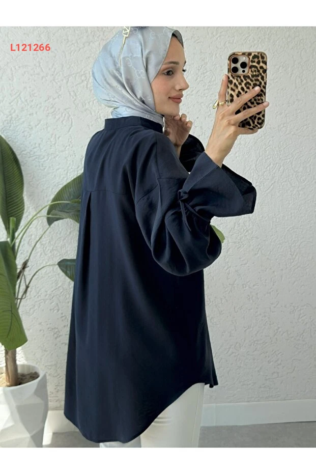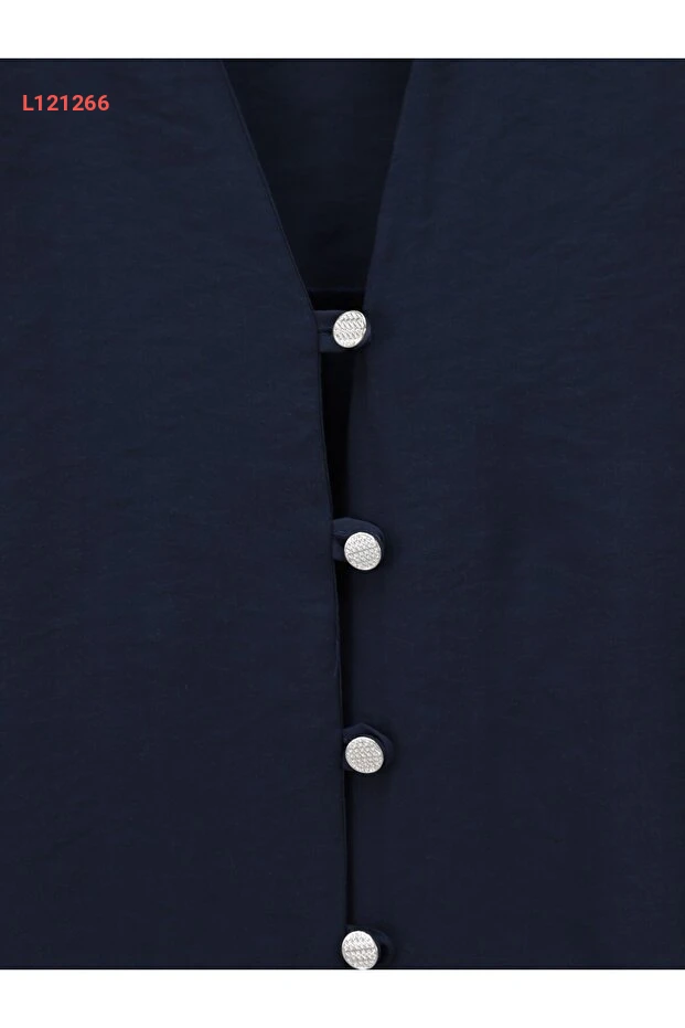 استمتع بالأناقة العصرية مع بلوزة "MODAQU" ذات الأزرار الطويلة ومربوطات الظهر، المصنوعة من قماش عالي الجودة باللون الأزرق الداكن. تمنحك هذه التونيك مظهرًا أنيقًا ومريحًا في ذات الوقت، كما تضفي لمسة من التفرد على إطلالتك اليومية. مثالية للارتداء في المناسبات المختلفة، تجمع بين البساطة والأناقة لتكون خيارك الأمثل.