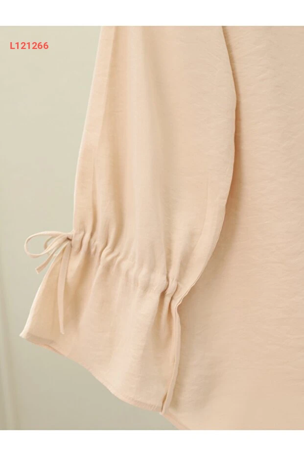 تونيك قميص موداكو بخياطة طويلة وأزرار مع رباط - بيج