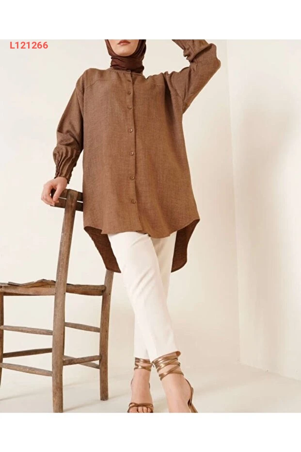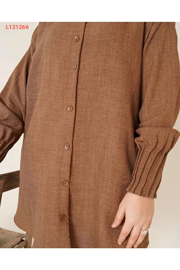 قميص كتان نسائي بتفاصيل كسرات على الأكمام