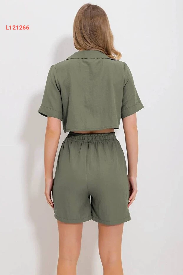 استمتعي بإطلالة أنيقة ومريحة مع طقم ModaWiser المكون من بلوزة بأكمام قصيرة وسروال شورت بتصميم V يتيح لك حرية الحركة. مصنوع من قماش الكتان الخفيف، يجمع هذا الطقم بين الأناقة العصرية والراحة الفائقة، مما يجعله خيارًا مثاليًا لأيام الصيف الحارة. أضيفي لمسة من الحيوية إلى خزانة ملابسك مع اللون الأخضر الجميل الذي يناسب مختلف المناسبات!