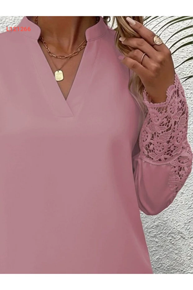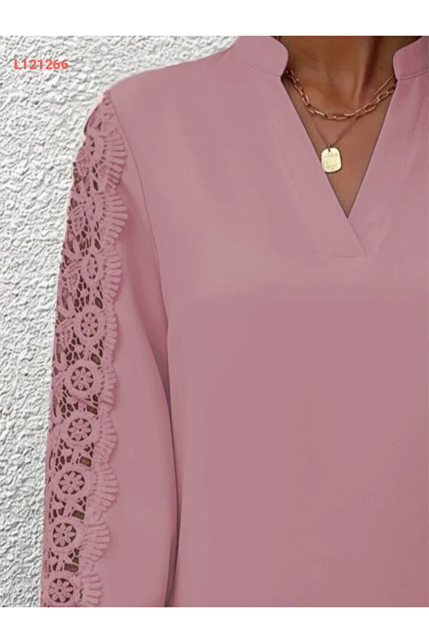 بلوزة كريب أنيقة للنساء بتصميم لائق بأكمام دانتيل وياقة حاكمة - موسم جديد