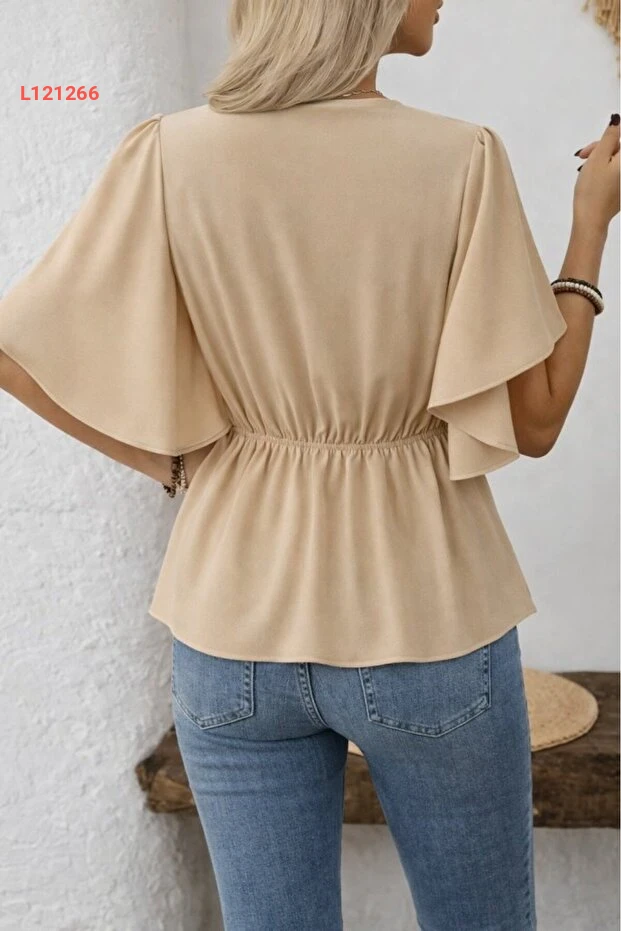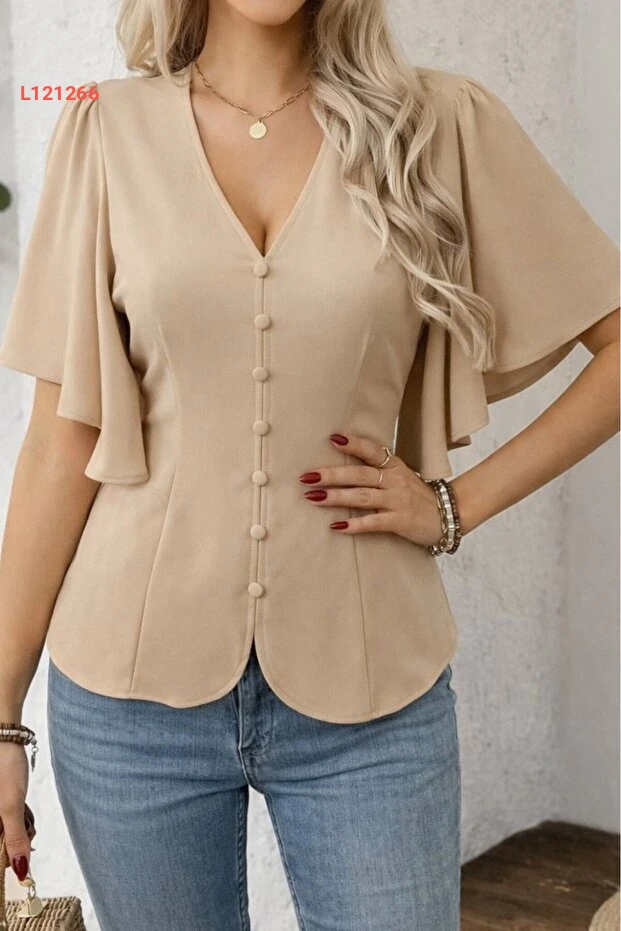 بلوزة كريب قصيرة الأكمام مزدانة بالأزرار من موداياكموز