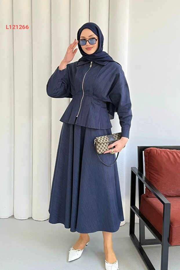 استمتعي بأناقة لا تضاهى مع طقم التستّر المكوّن من تنورة بليساتيك وسحاب، حيث يجمع بين الراحة والموضة العصرية بلون إنديجو الساحر. تصميمه الأنيق يوفر لكِ حرية الحركة مع لمسة من الأنوثة، مما يجعل هذا الطقم الخيار المثالي للمناسبات اليومية والسهرات الخاصة. تألقي بثقة وتميّزي بأسلوبك المتفرّد!