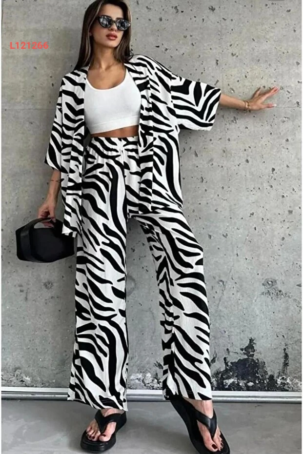 استمتعي بأناقتك الصيفية مع طقم الكيمونو العصري MODERNİZE! يتميّز هذا الطقم بتصميمه الراقي بلونين أنيقين، الأسود والأبيض، مع قصّة مريحة تمنحك حرية الحركة. اجعليه خيارك المثالي للمناسبات اليومية أو السهرات المسائية لتتألقي بإطلالة مميزة وجذابة.