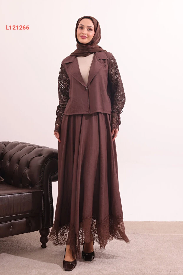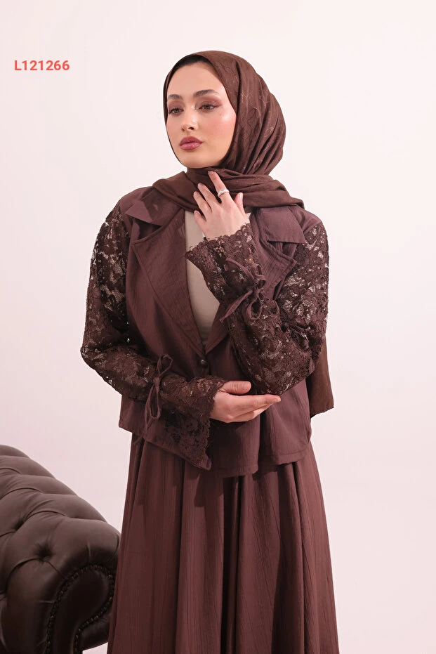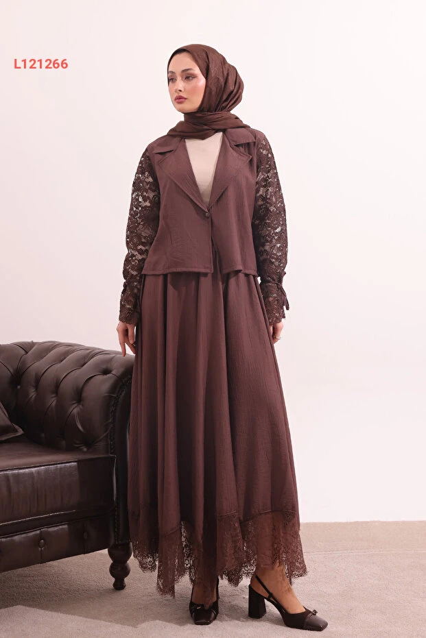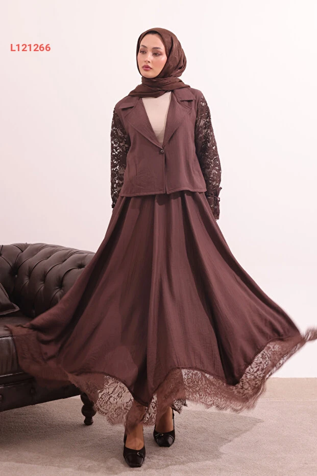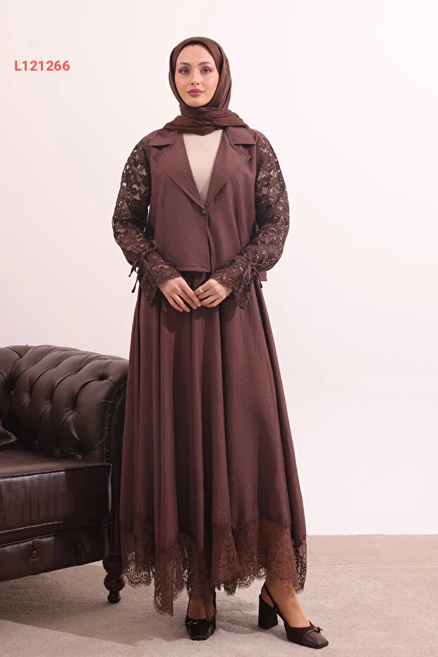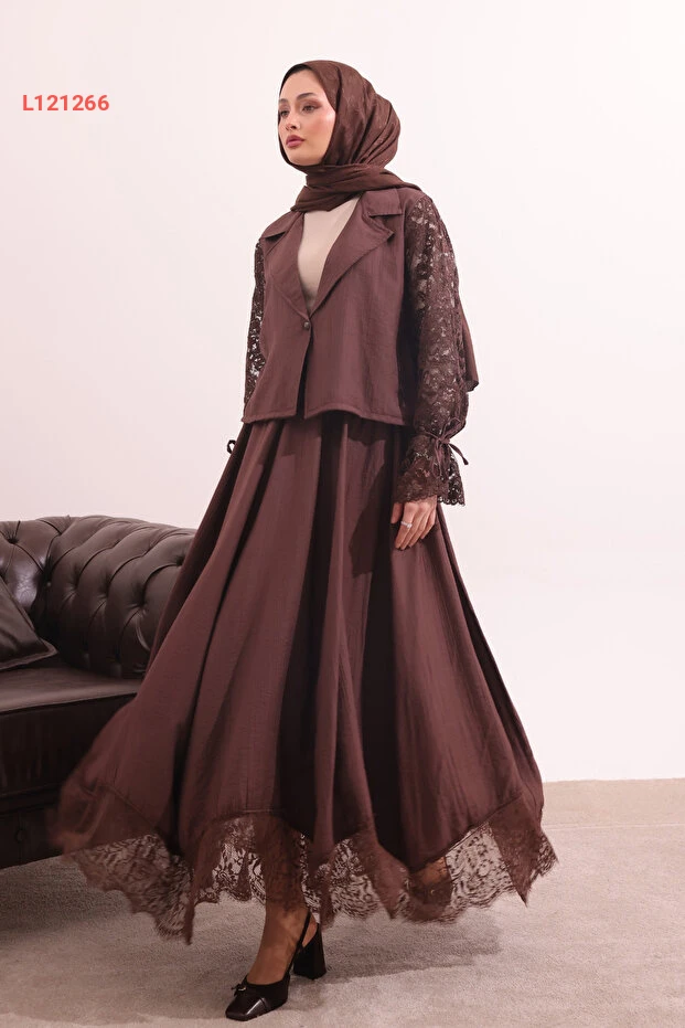 اكتشفي أناقتك مع طقم Mogi Butik المصنوع من قماش الفراولة، المزود بتفاصيل الدانتيل الرقيقة. يجمع هذا الطقم بين الستايل العصري والاحتشام، مما يجعله مثالياً لكل المناسبات. تألقي بإطلالة رائعة تجمع بين الراحة والفخامة في كل خطوة!