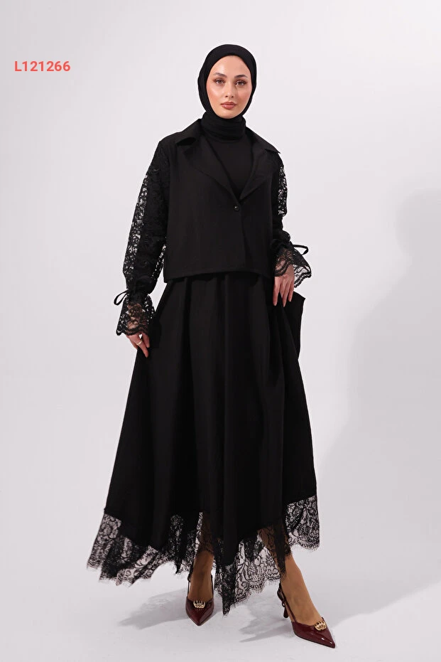 مجموعة مودينغ دُرّة: طقم نسائي مع تنورة من قماش الدانتيل والسترة الرائعة